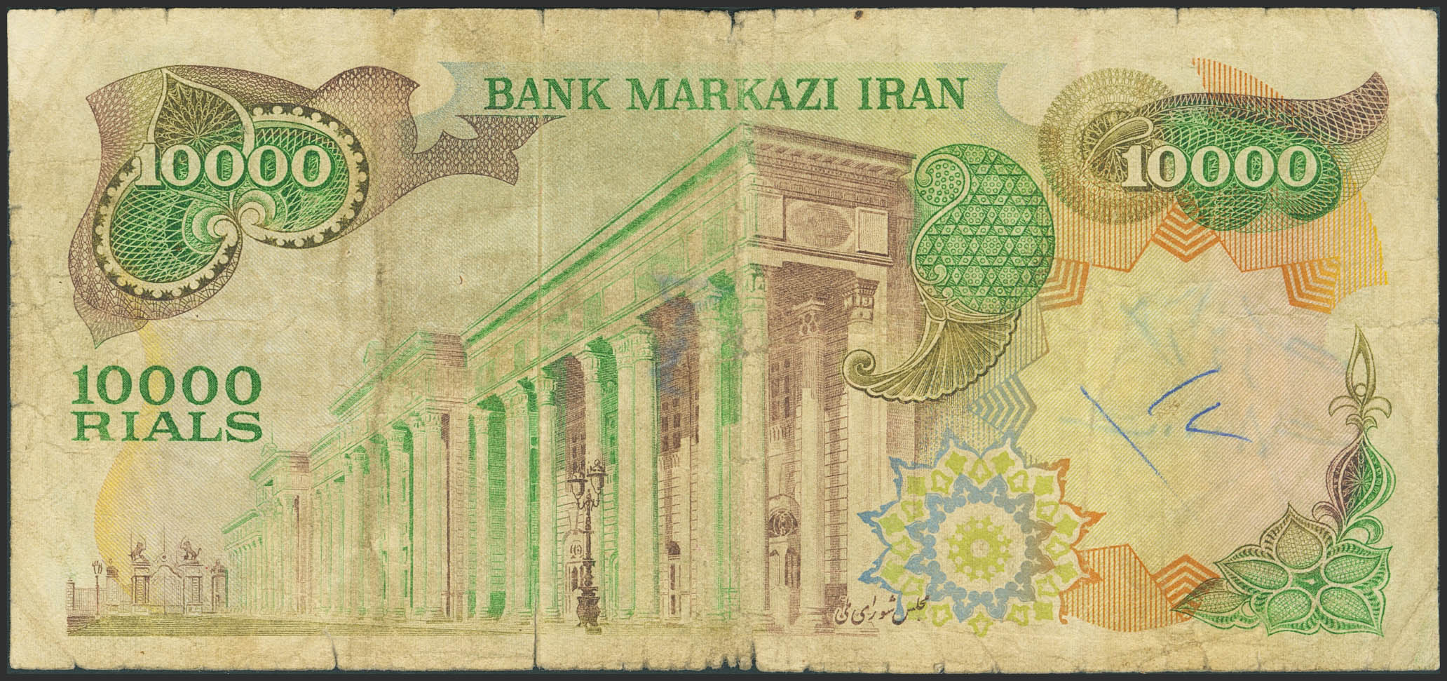IRAN. 10000 Rials. (1974ca). Bank Markazi Iran. (Pick: 107a). Tears, pinholes and handwritten. Fine.
