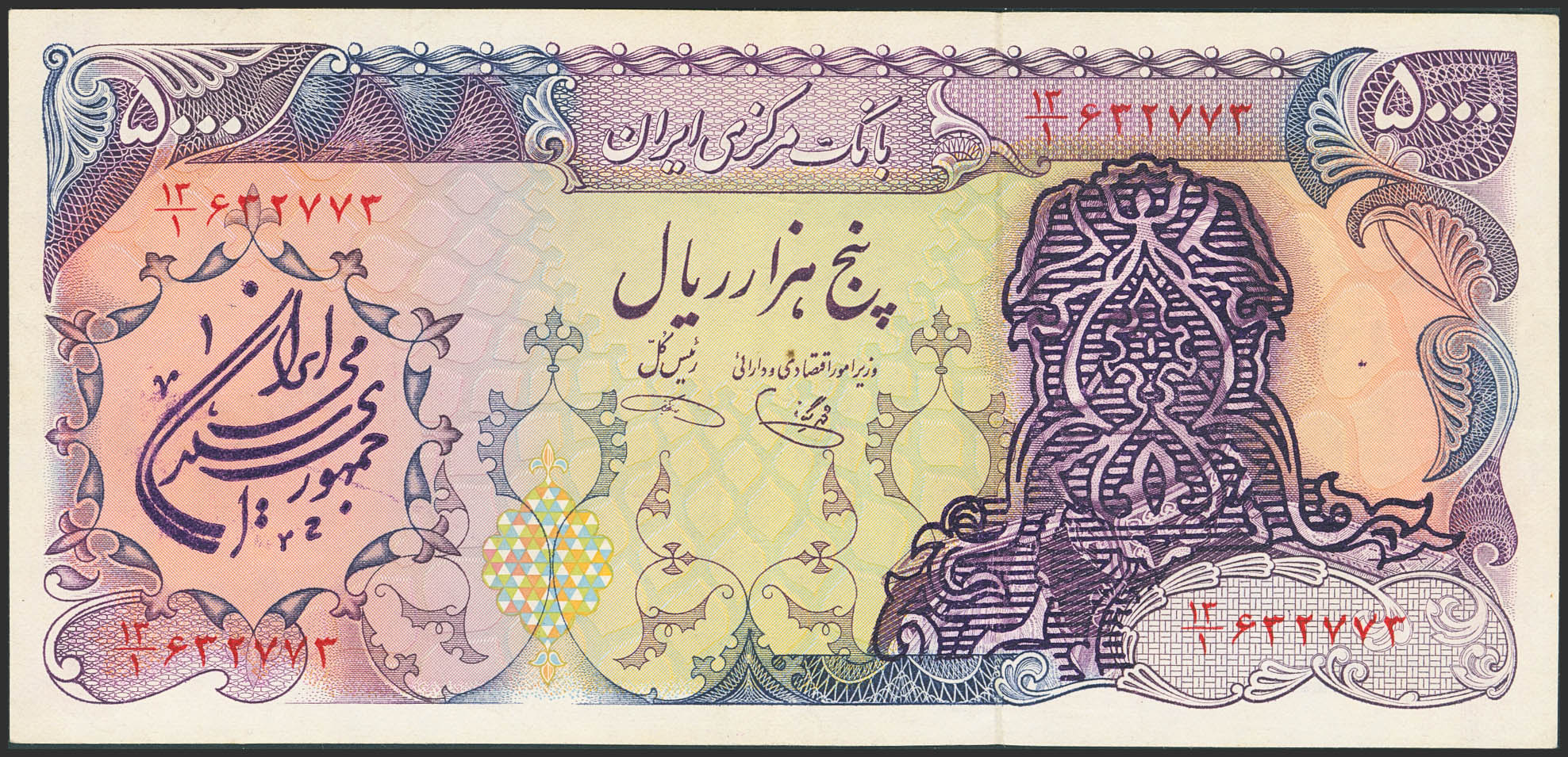 IRAN. 5000 Rials. (1979ca). Bank Markazi Iran. (Pick: 126b). Washed and flattened. Very Fine.