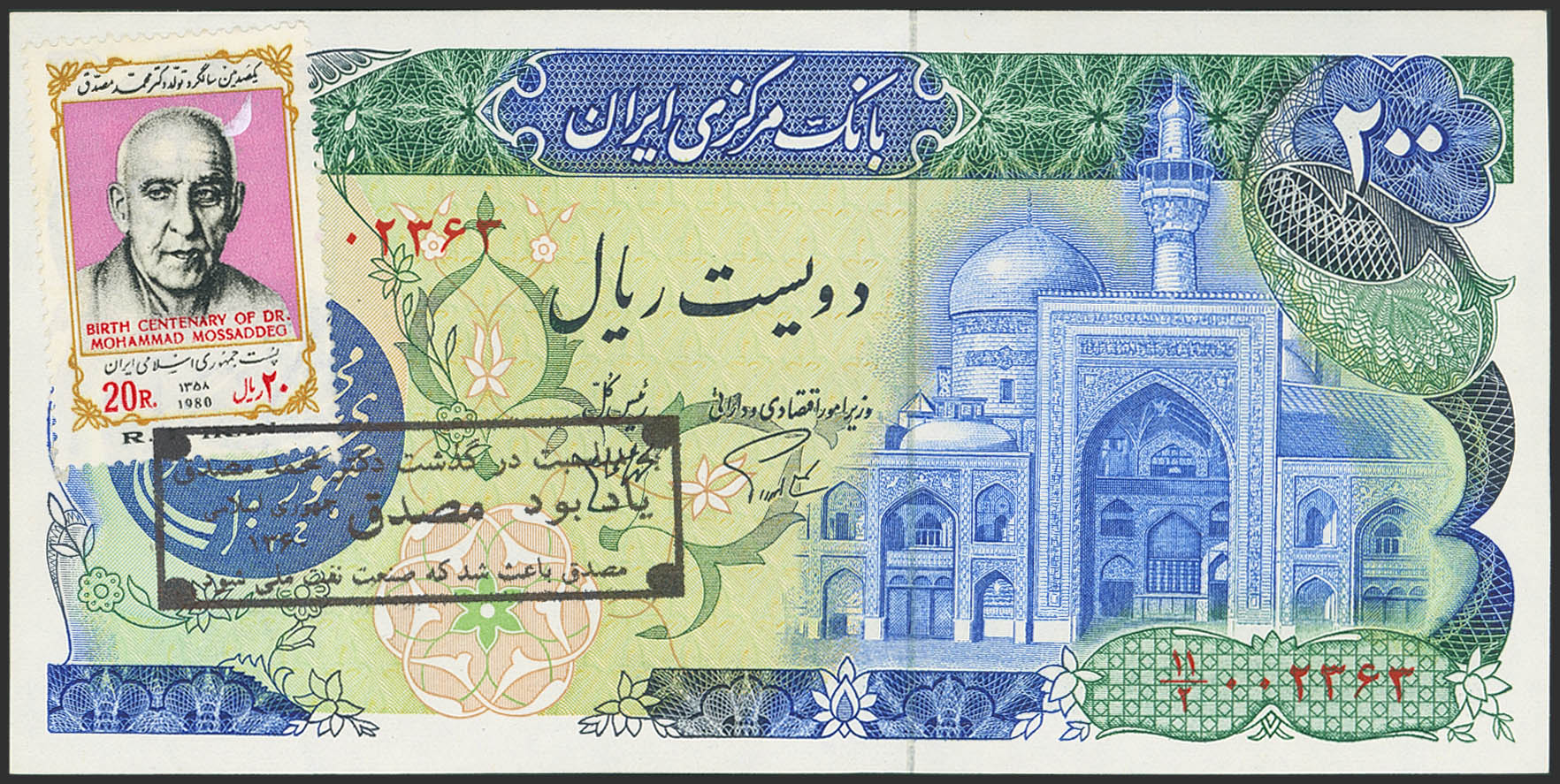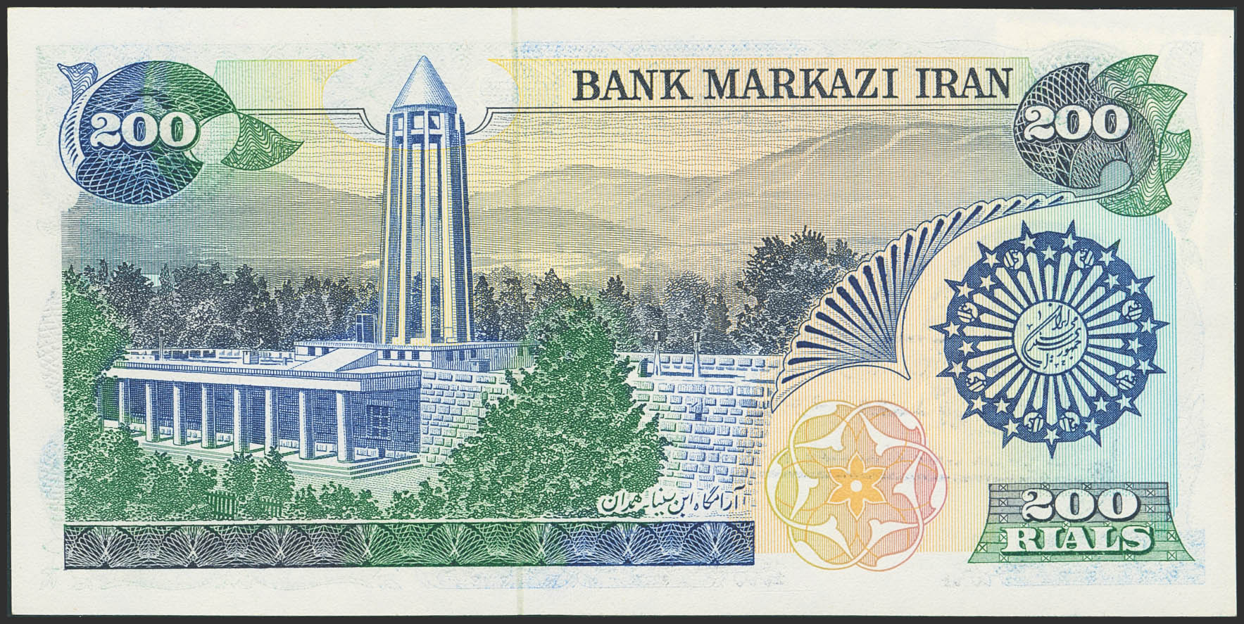 IRAN. 200 Rials. (1981ca). Bank Markazi Iran. With revalidation stamp. (Pick: 127a). Uncirculated.