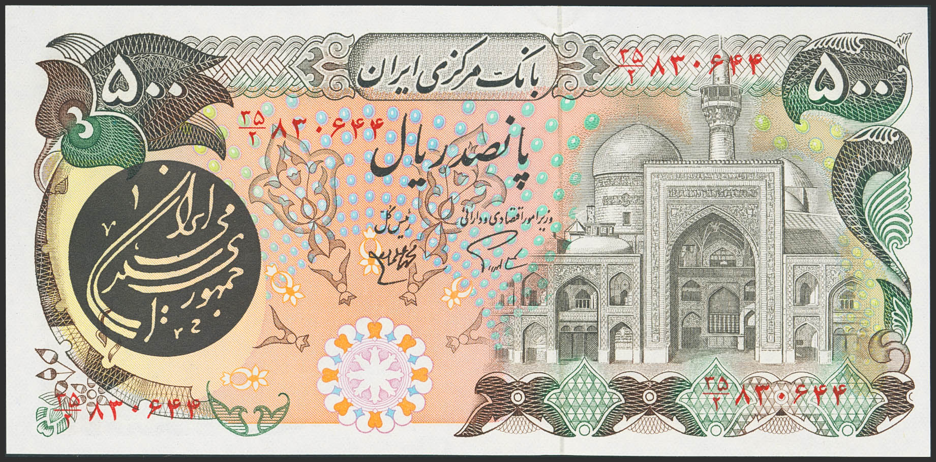 IRAN. 500 Rials. (1981ca). Bank Markazi Iran. (Pick: 128). Uncirculated.
