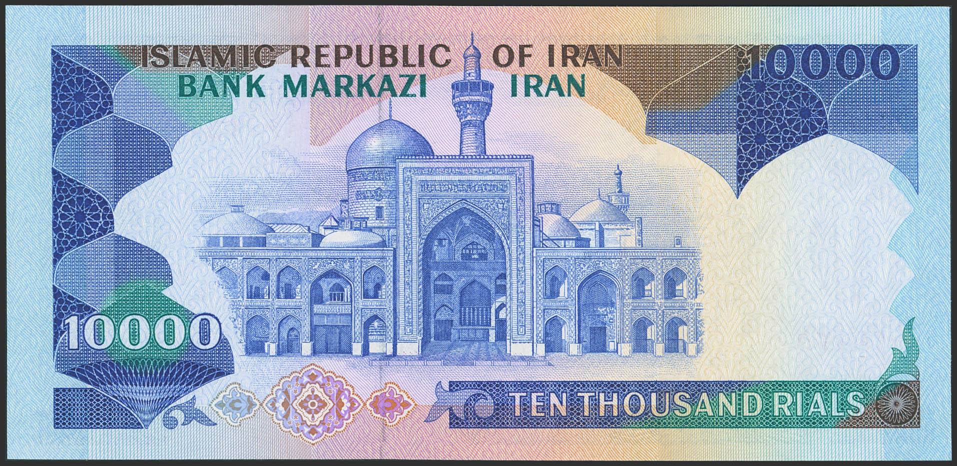 IRAN. 10000 Rials. (1981ca). Bank Markazi Iran. Dr. Mohsen Noorbakhsh and Mohammad Djavad Iravani. (Pick: 134c). Uncirculated.