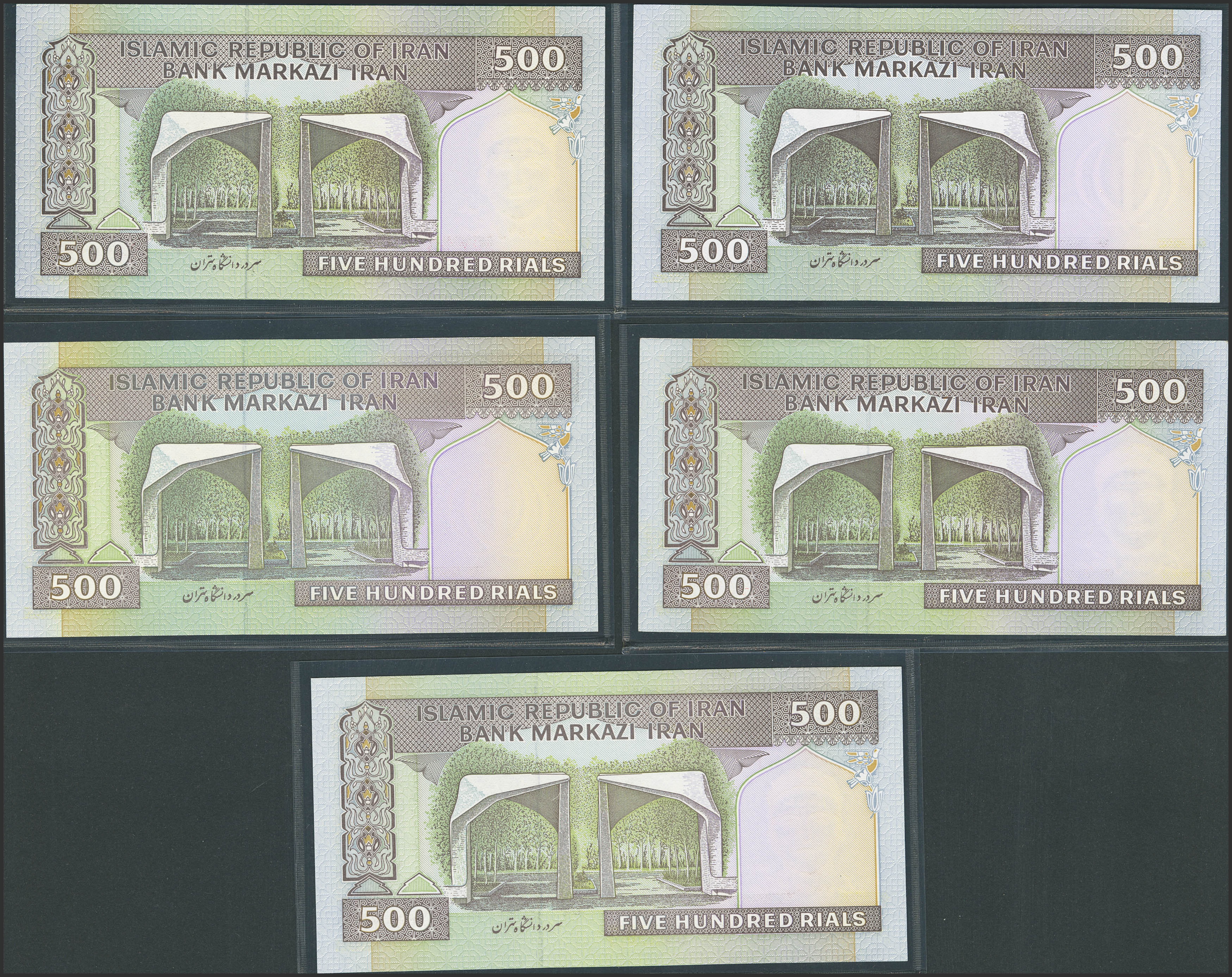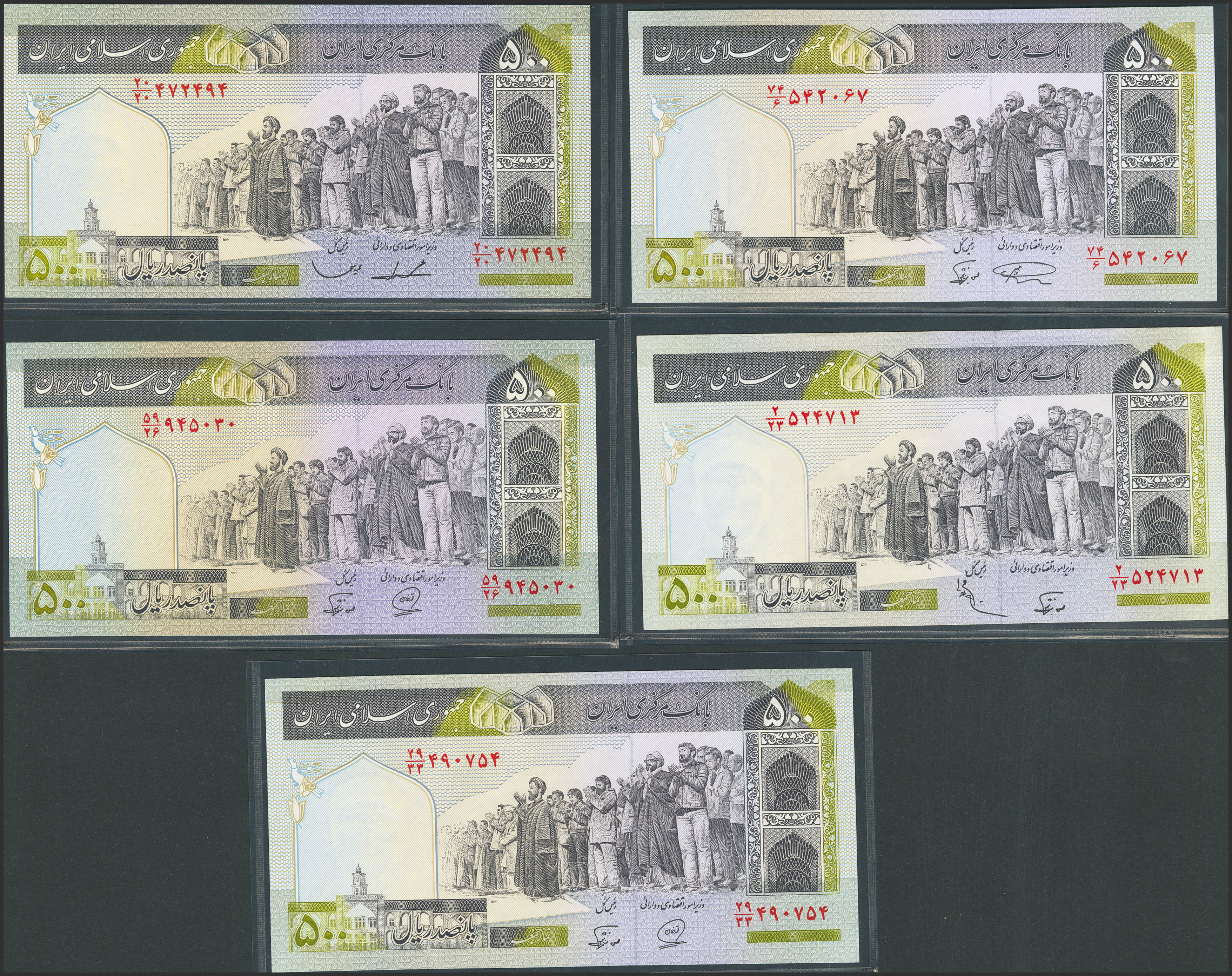 IRAN. Lot of 5 notes of 500 Rials. (1982ca). Bank Markazi Iran. (Pick: 137a, 137d, 137f, 137h, 137i). Uncirculated.
