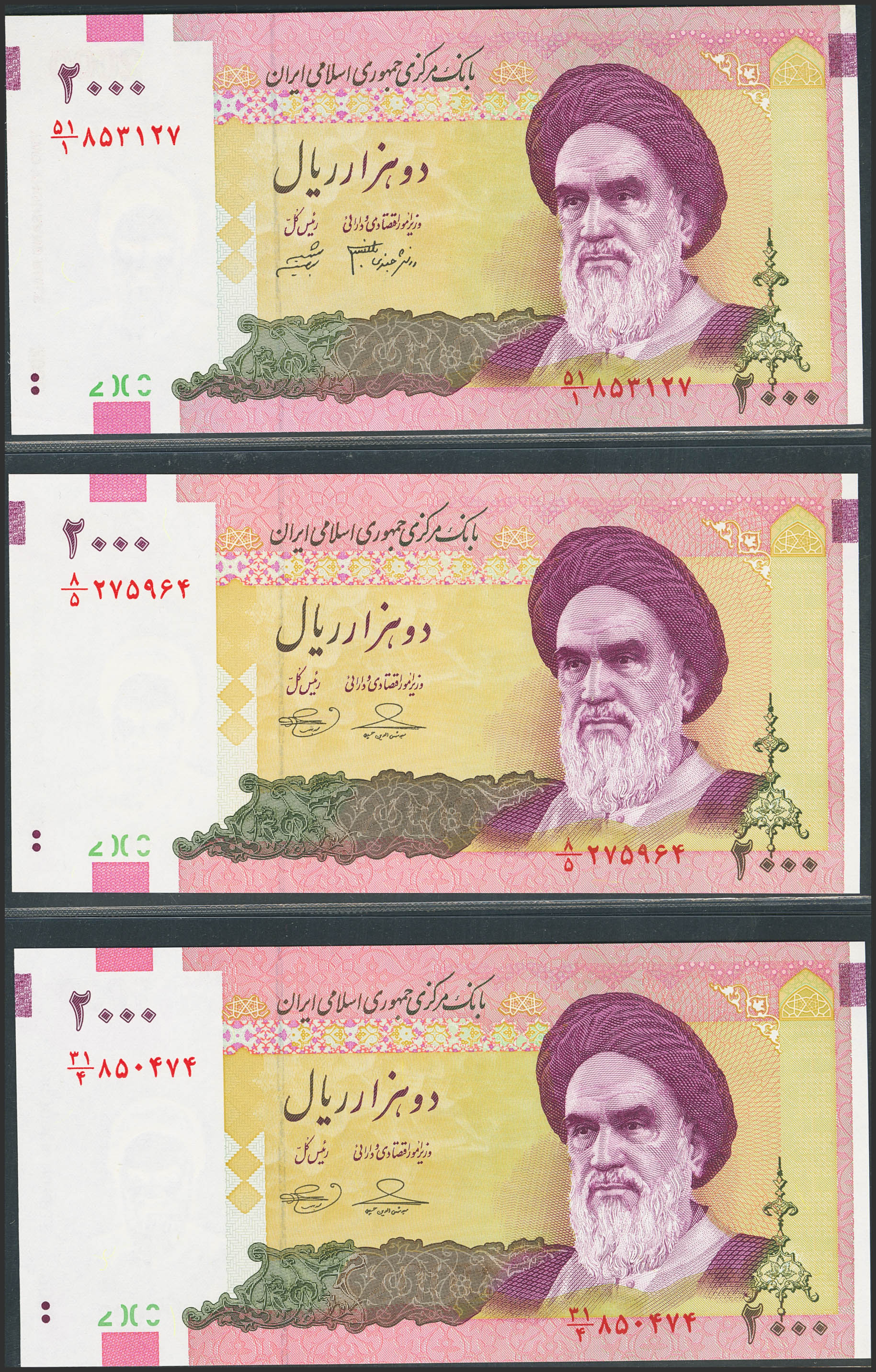 IRAN. 2000 Rials. (2005ca). Central Bank of the Islamic Republic. (Pick: 144a, 144d(2)). Uncirculated (1) and Less than Uncirculated (2).
