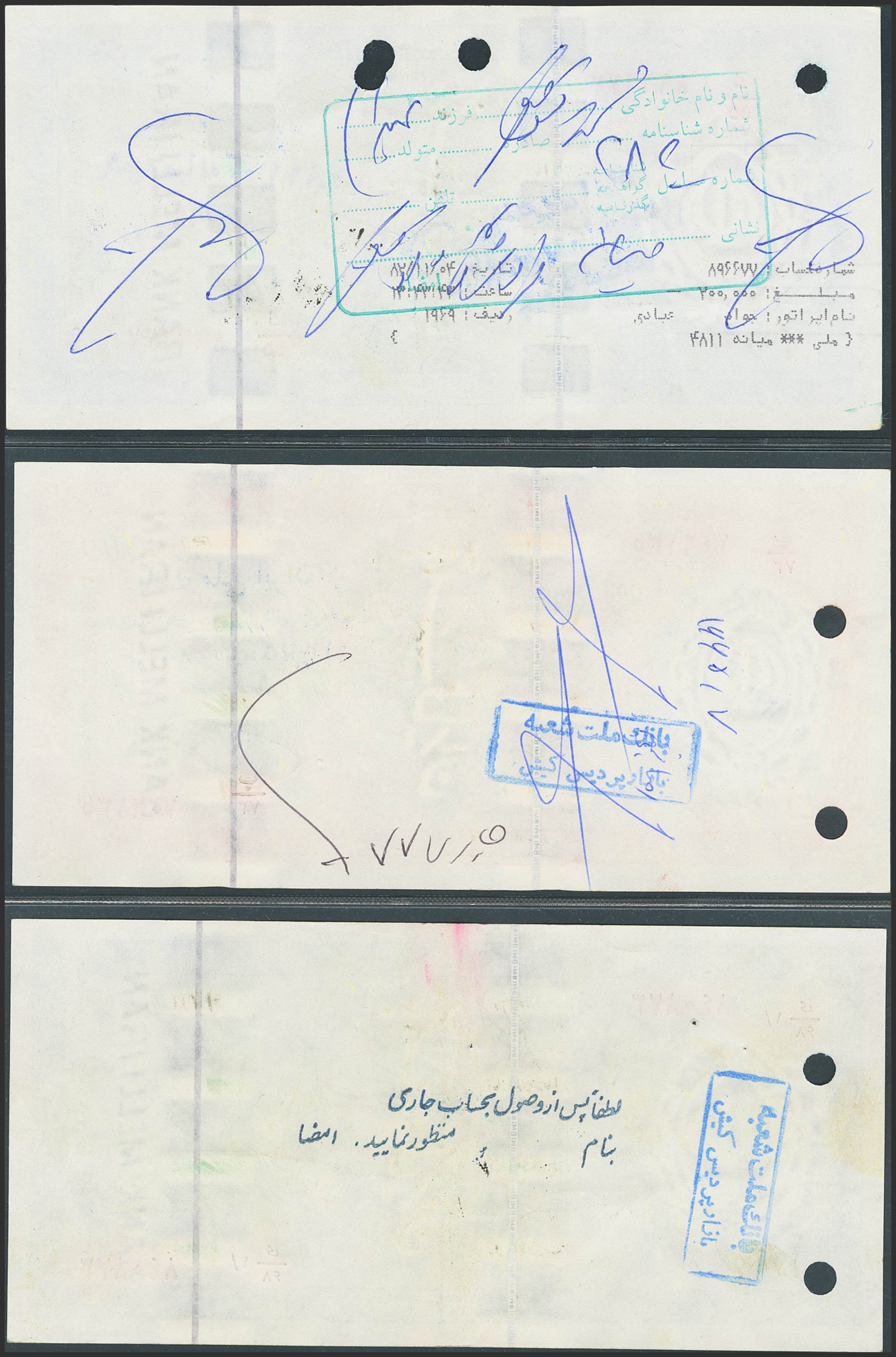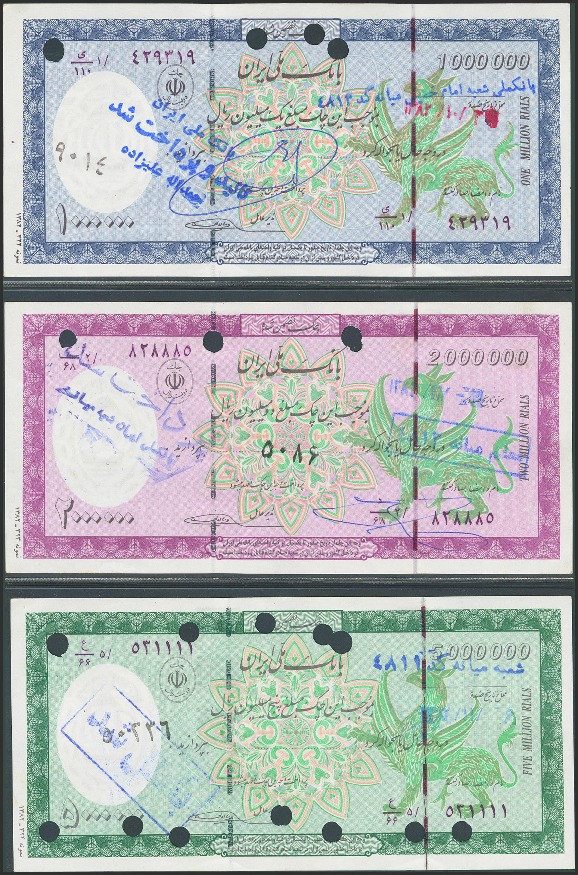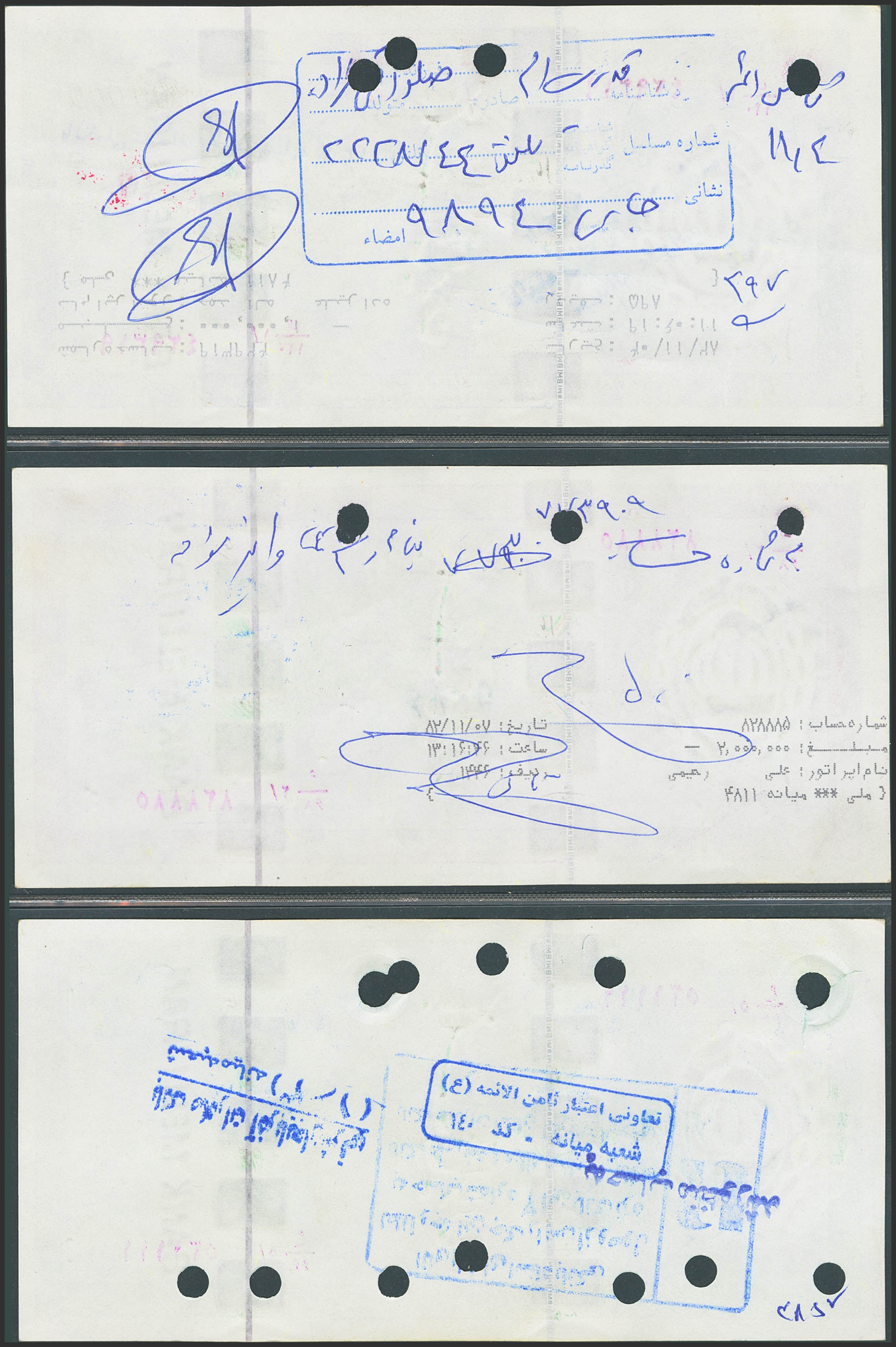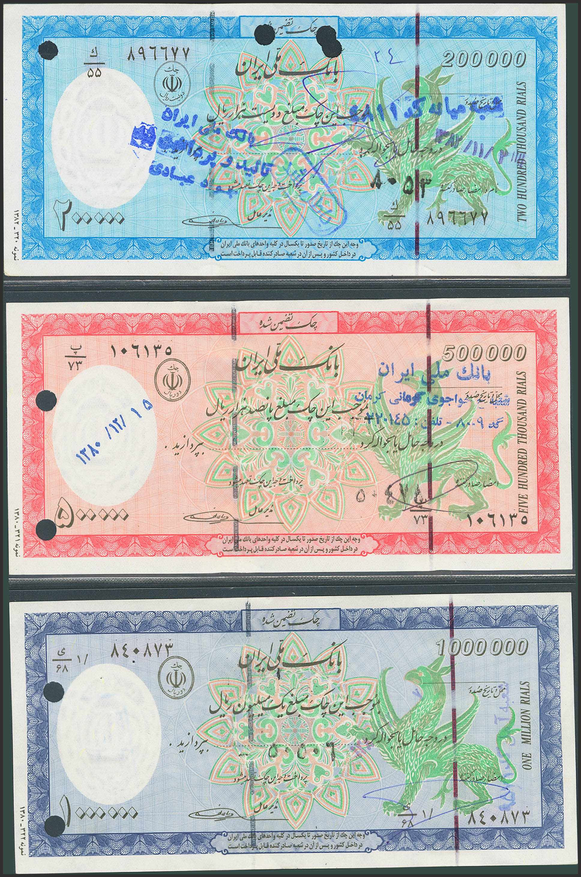 IRAN. Lot of 6 notes of differents denominations. 2004. Bank checks in various denominations. Cancelled. (Pick: Unlisted). More than Extremely Fine / Almost Uncirculated