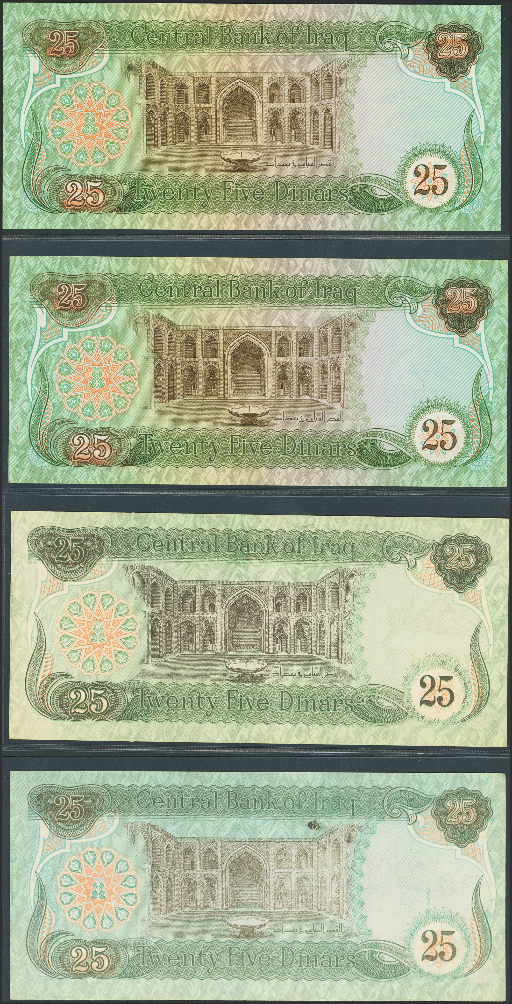 IRAQ. Lot of 4 notes of 25 Dinars. 1982 and 1990. Central Bank. (Pick: 72(2), 74b). Less than Uncirculated (2) and Uncirculated (2).