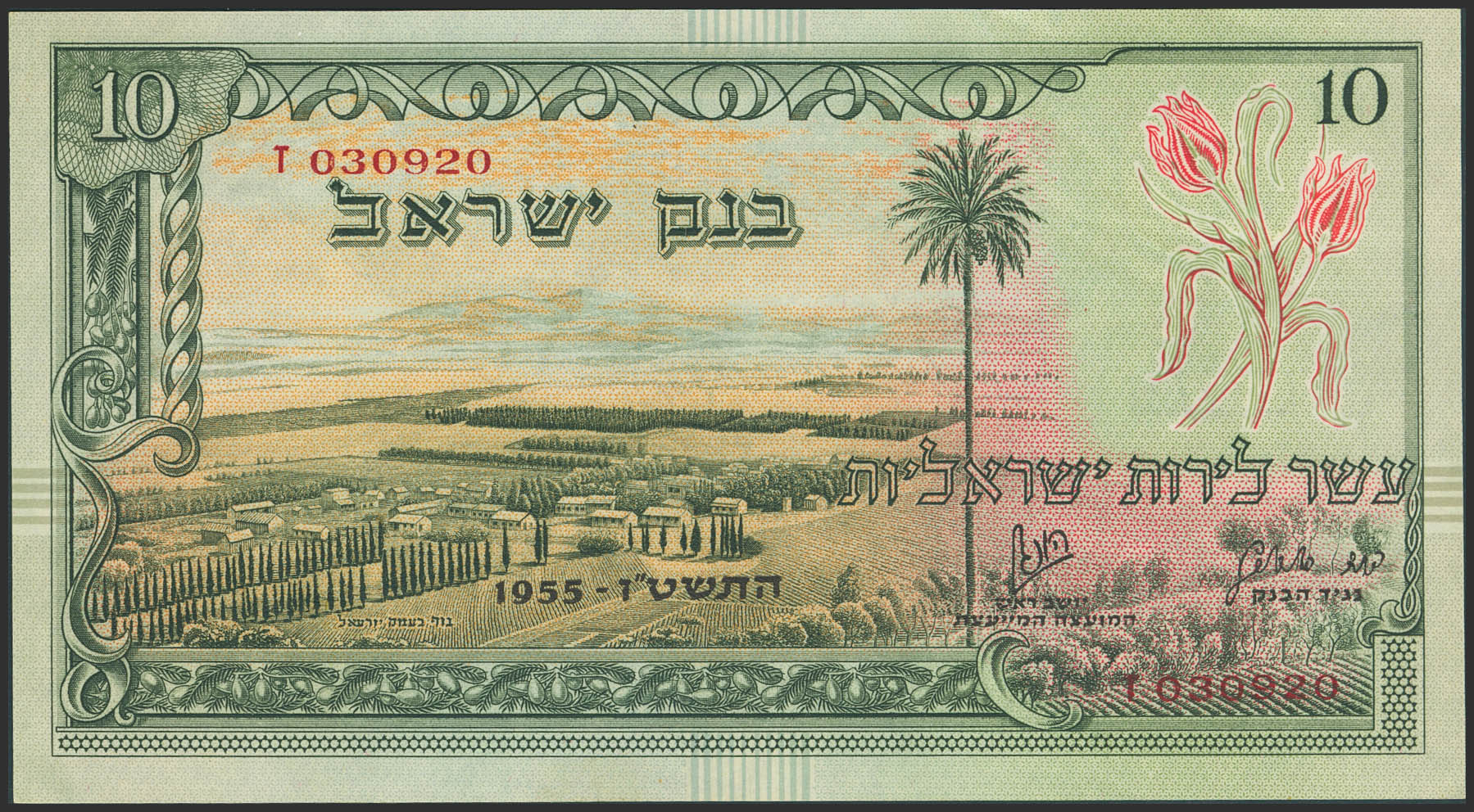 ISRAEL. 10 Pounds / Lirot. 1955. Bank of Israel. (Pick: 27a). Handling marks. Almost Uncirculated.
