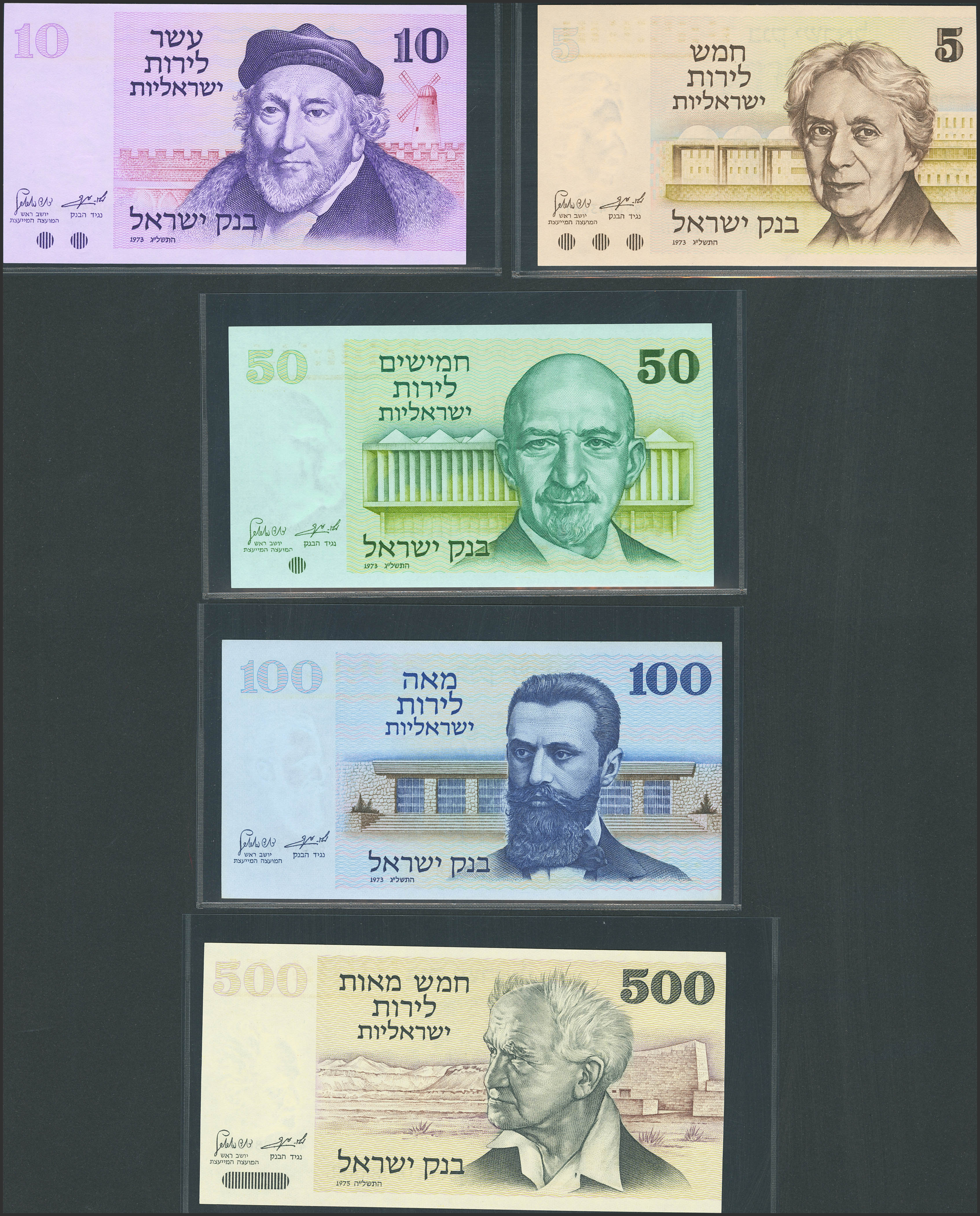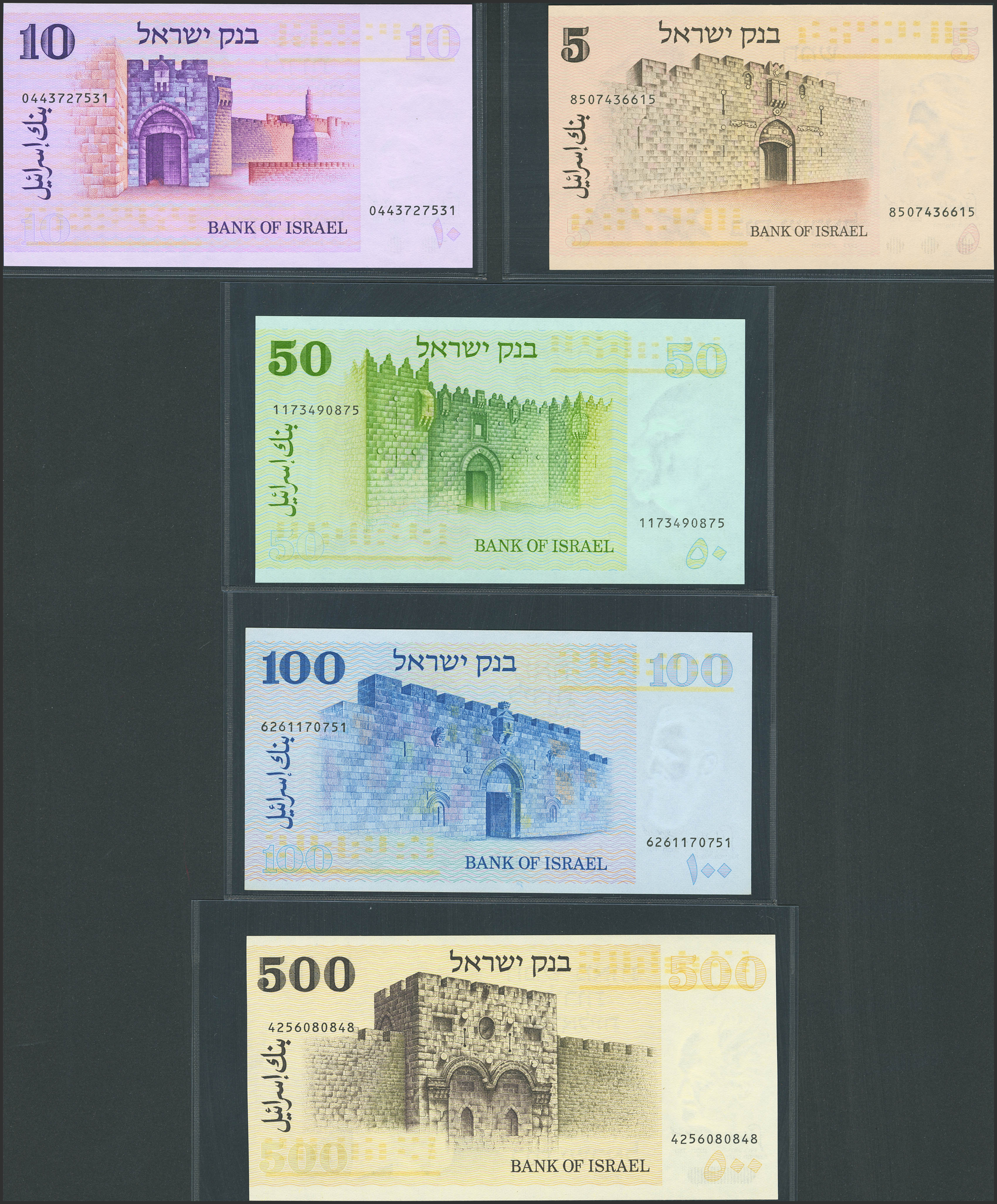 ISRAEL. Complete set of 5 notes from 5 at 500 Lirot. 1973 and 1975. Bank of Israel. (Pick: 38, 39, 40, 41, 42). Uncirculated.