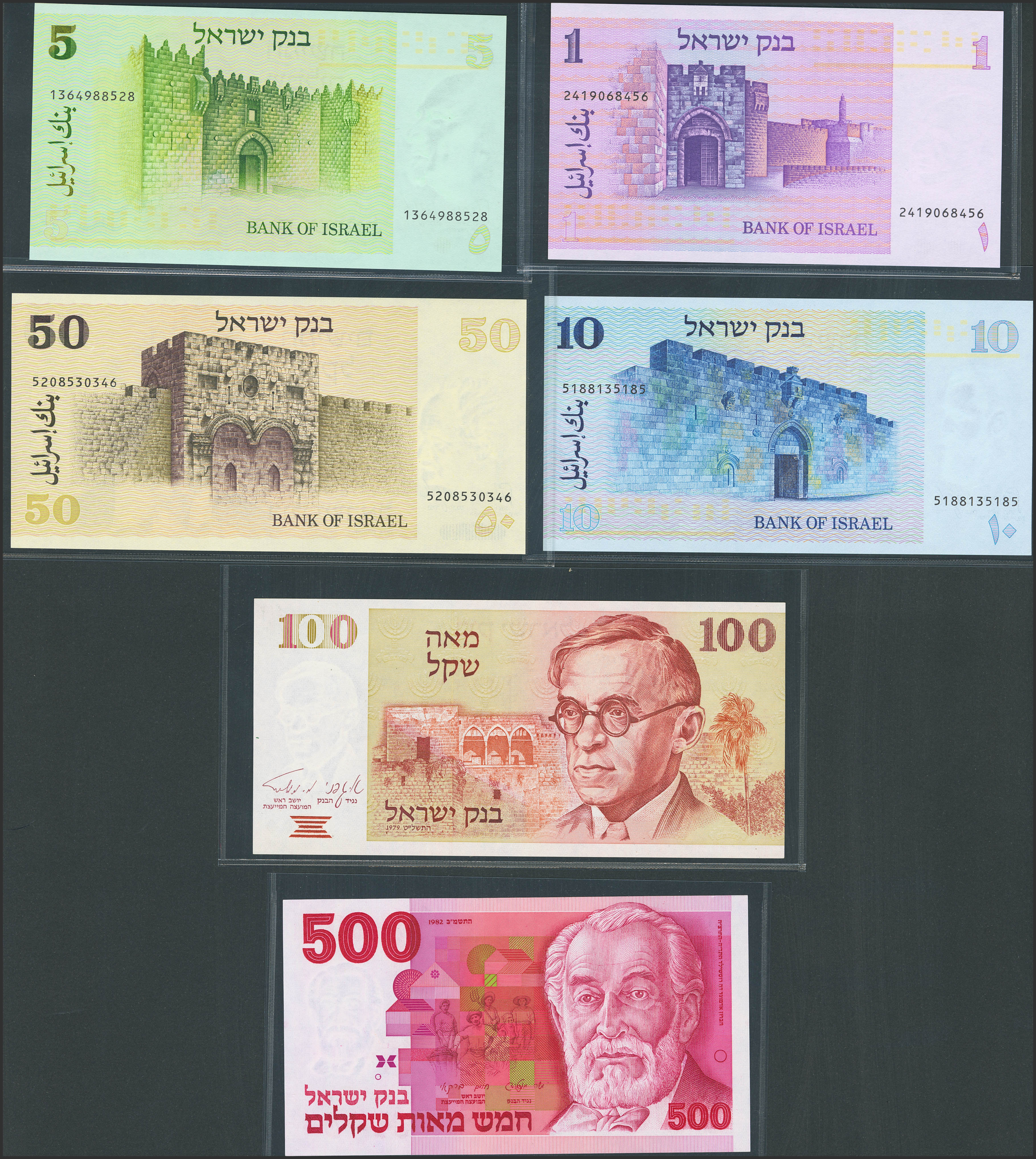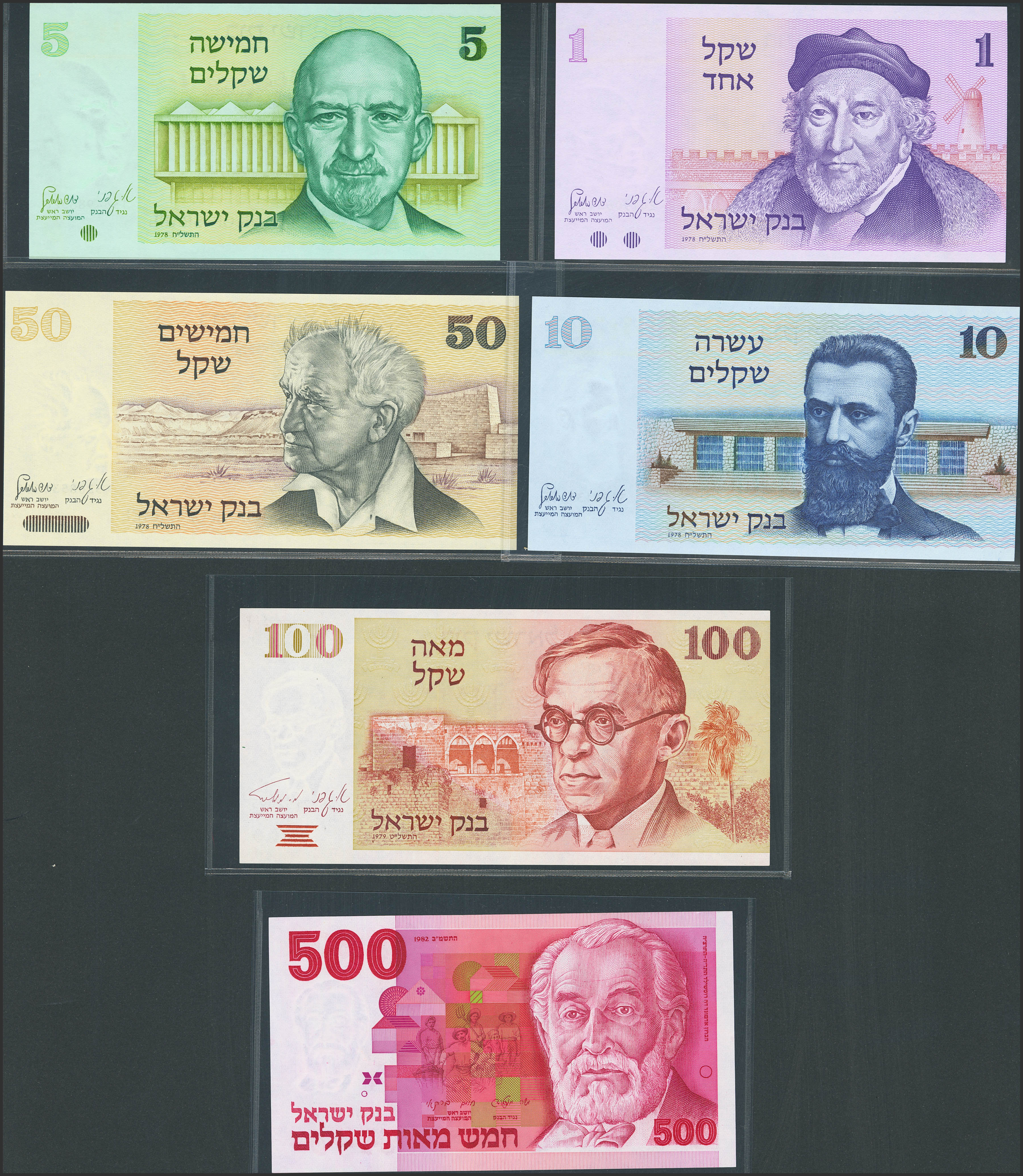 ISRAEL. Lot of 6 notes from 1 Sheqel at 500 Sheqalim. 1978, 1979 and 1982. Bank of Israel. (Pick: 43a, 44, 45, 46a, 47a, 48). Uncirculated.