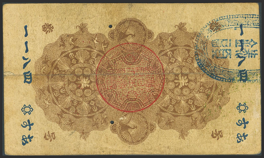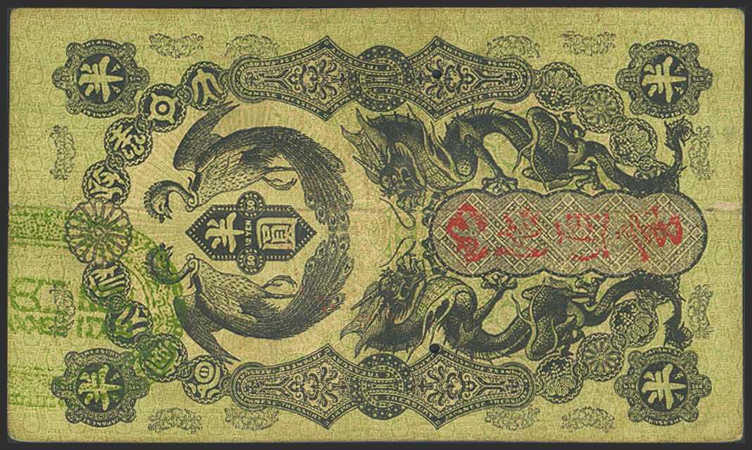 JAPAN. ½ Sen. (1872ca). Great Japanese Government. Ministry of Finance. (Pick: 3). Tear, two pinholes. Very Fine.