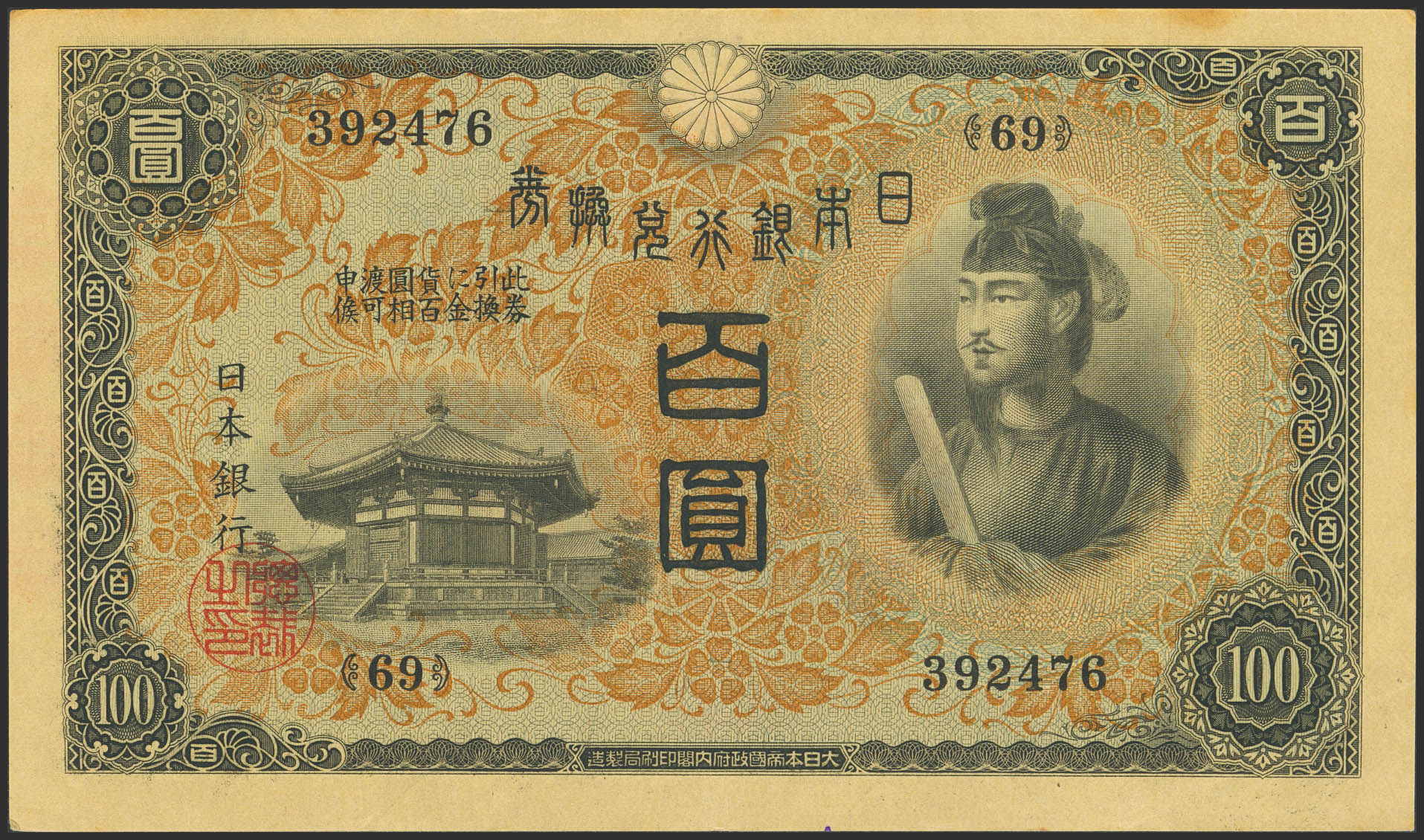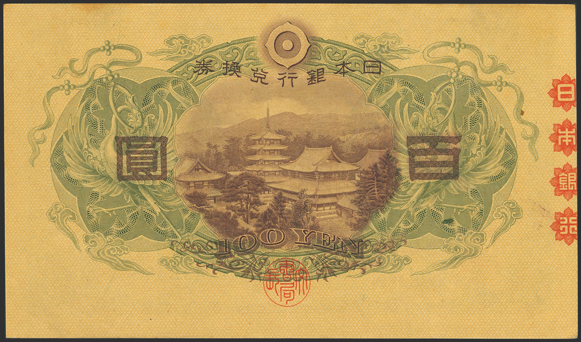 JAPAN. 100 Yen. (1930ca). Bank of Japan. (Pick: 42a). Stain on upper margin. Extremely Fine.
