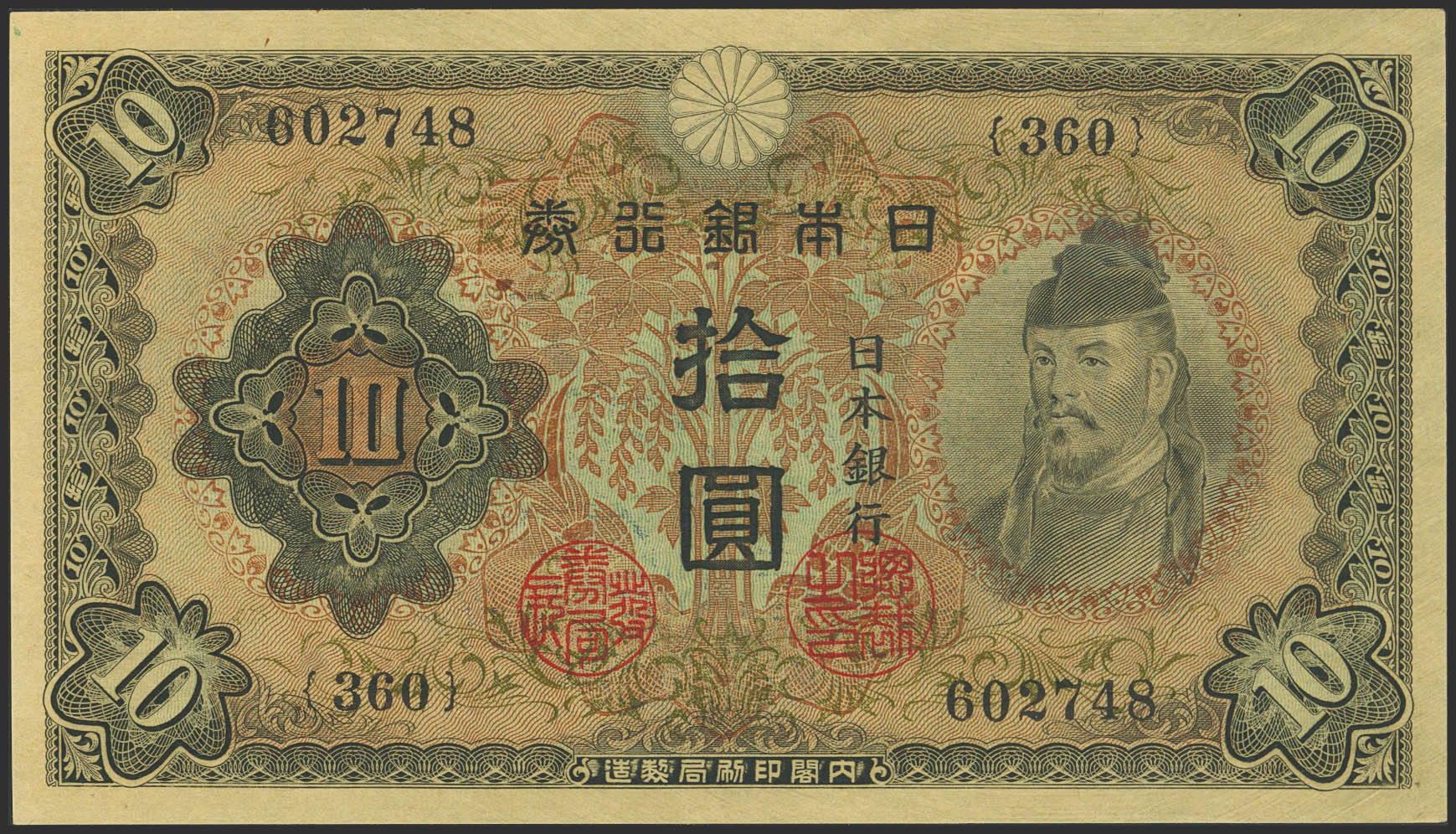 JAPAN. 10 Yen. (1943ca). Bank of Japan. (Pick: 51a). Less than Uncirculated.