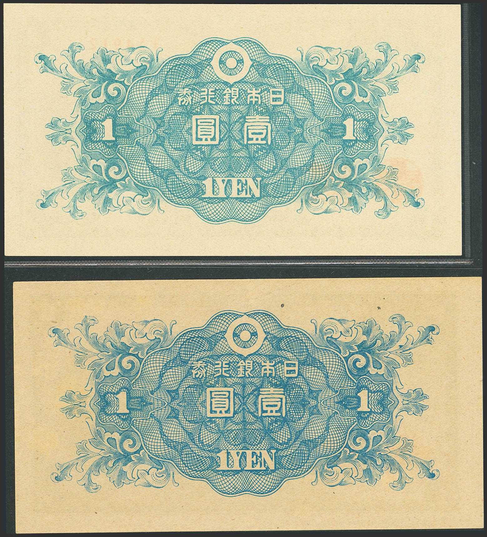 JAPAN. Lot of 2 notes of 1 Yen. (1946ca). Bank of Japan. (Pick: 85a). Less than Uncirculated.