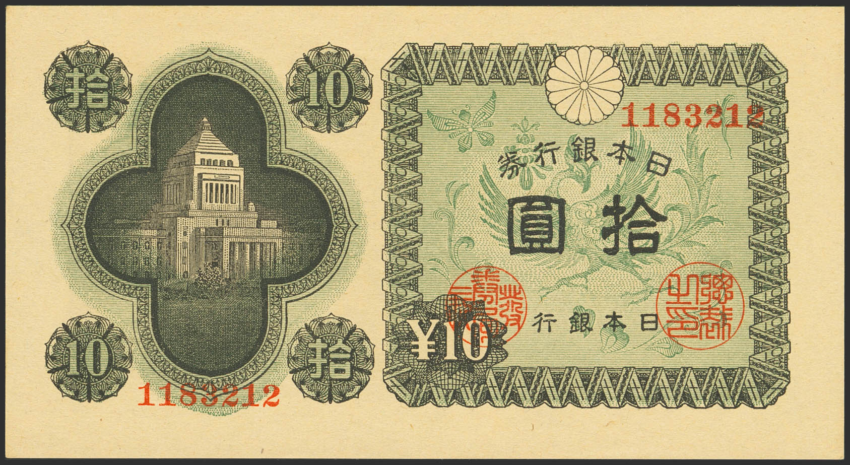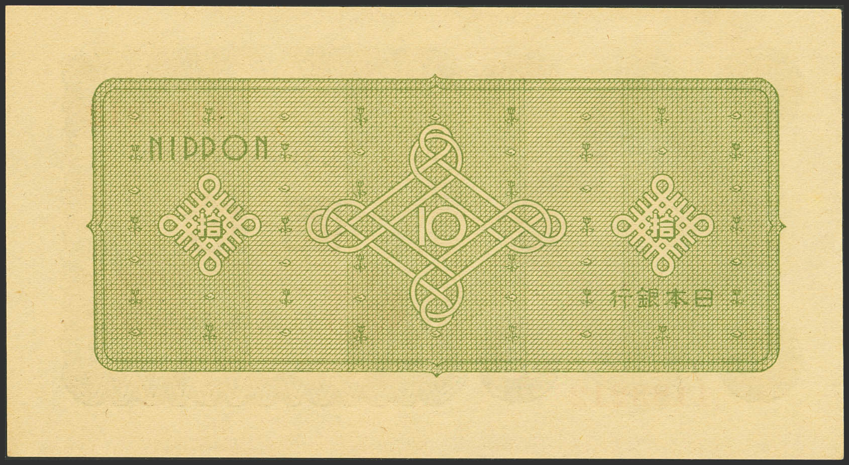 JAPAN. 10 Yen. (1946ca). Bank of Japan. (Pick: 87a). Almost Uncirculated.