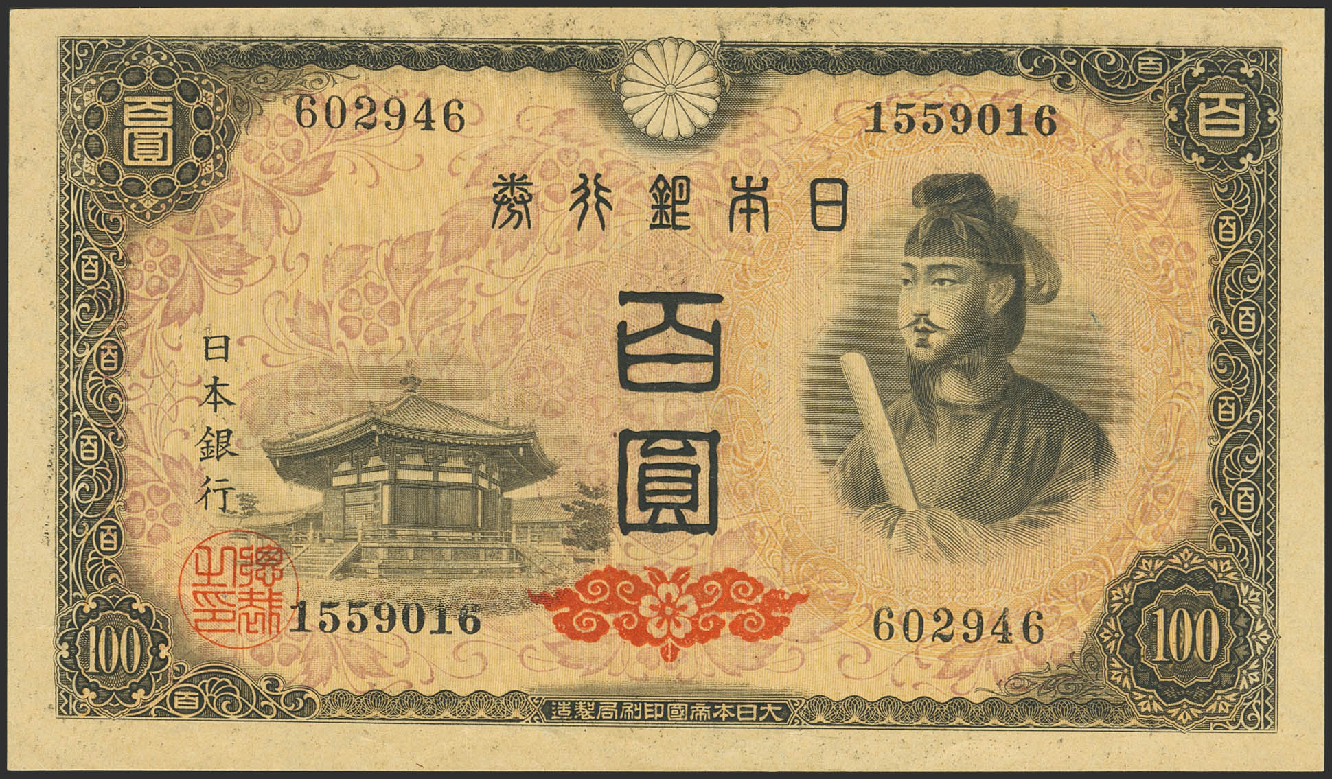 JAPAN. 100 Yen. (1946ca). Bank of Japan. (Pick: 89a). Minor handling marks. Less than Uncirculated.