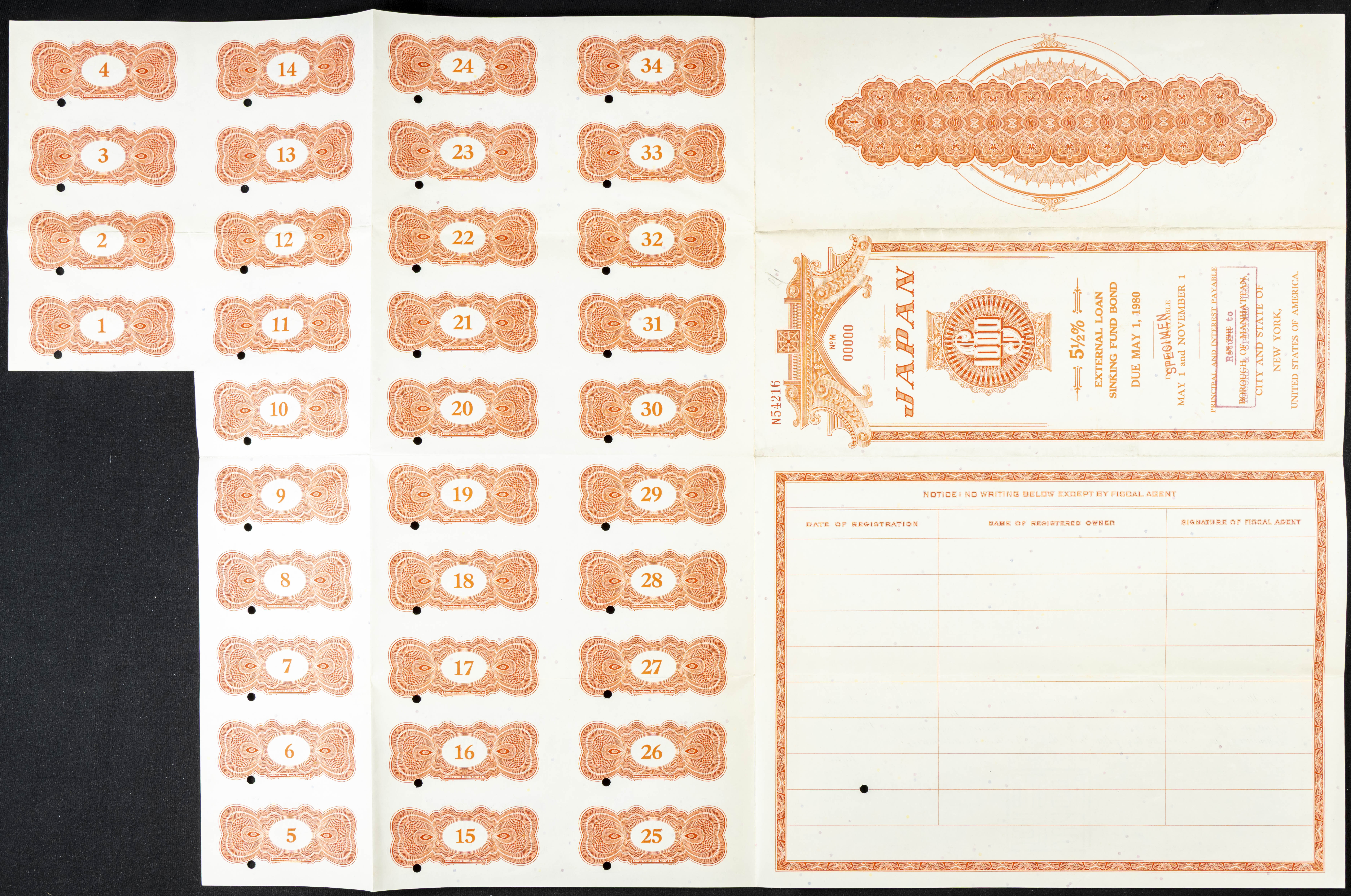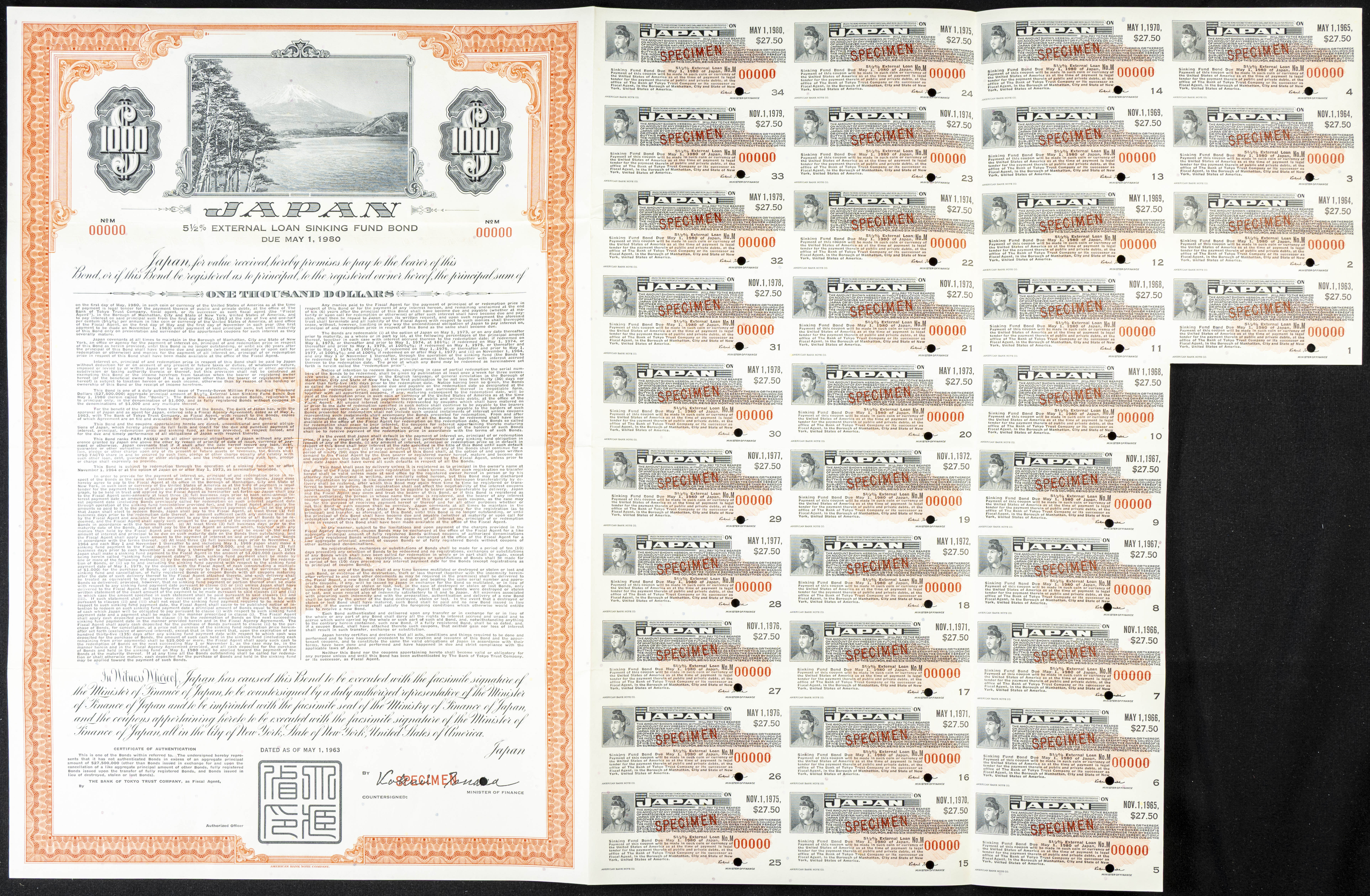 JAPAN. 1000 Dollars. 1 May 1980. External Loan Sinking Fund Bond. SPECIMEN. (Pick: Unlisted). More than Extremely Fine.
