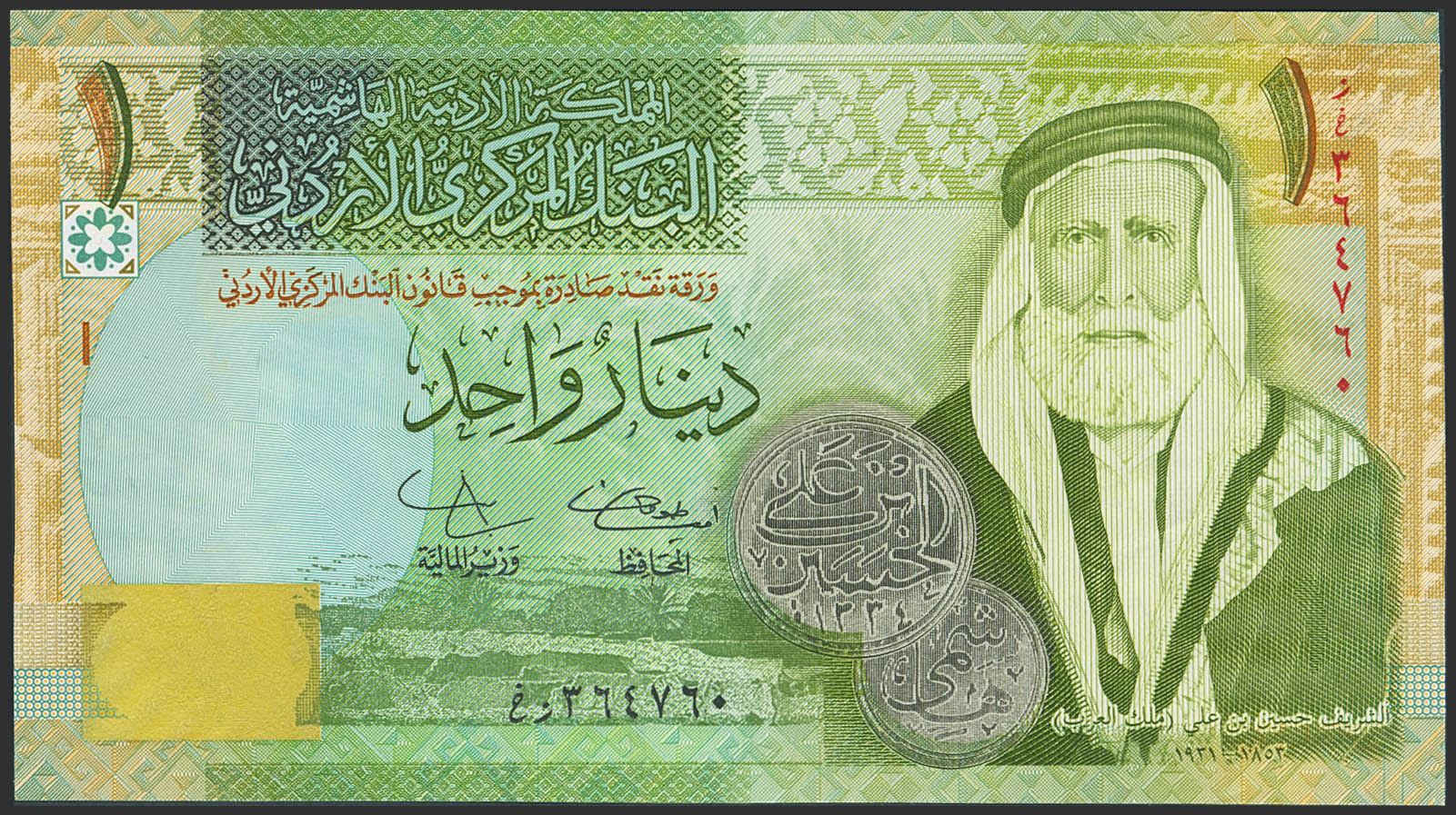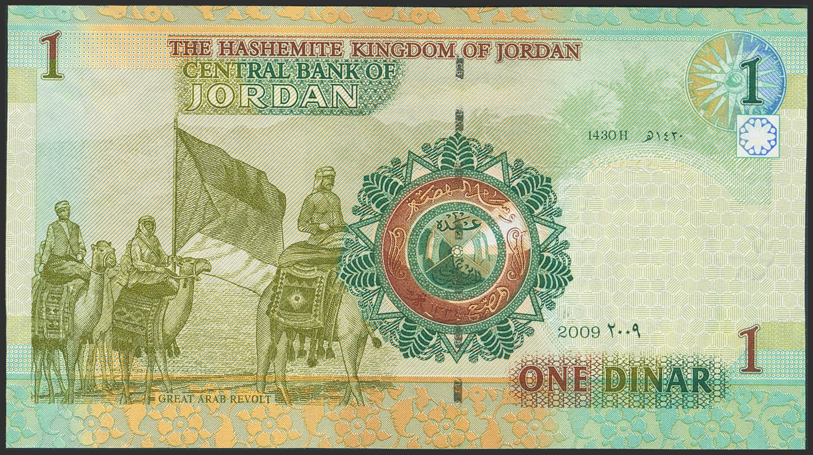 JORDAN. 1 Dinar. 2009. Central Bank. (Pick: 34e). Uncirculated.