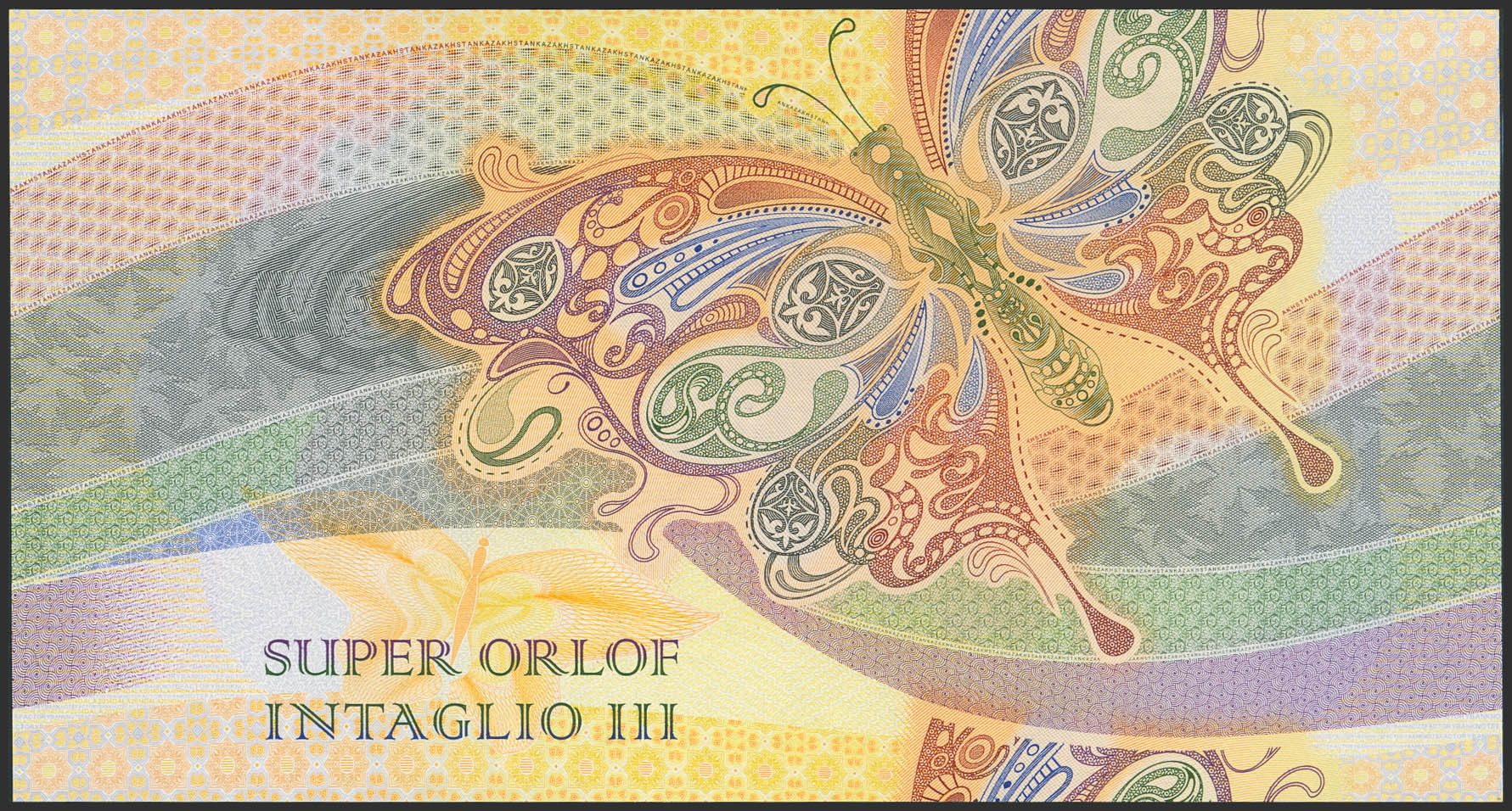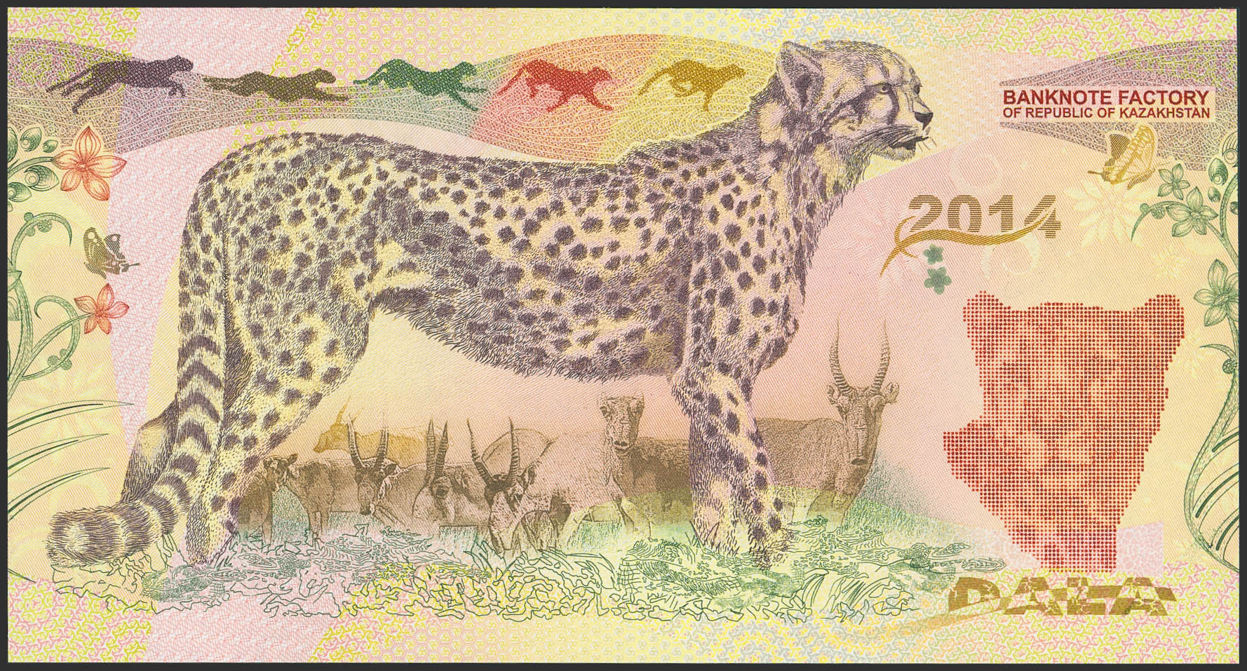 KAZAKHSTAN. No denomination. 2014. Leopard and butterfly. Super Orlof Intaglio. Test Note. (Pick: Unlisted). Uncirculated.