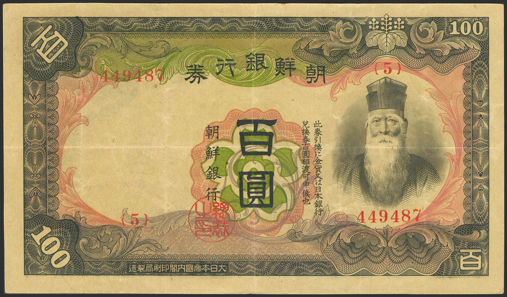 KOREA. 100 Yen. (1938ca). Bank of Chosen. (Pick: 32a). More than Very Fine.