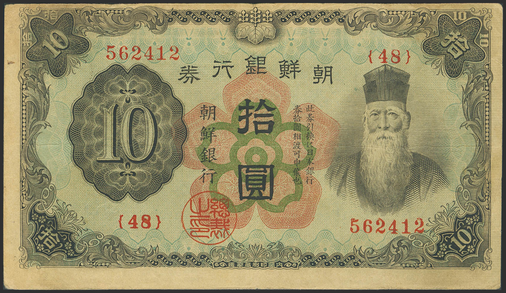 KOREA. 10 Yen. (1944ca). Bank of Chosen. (Pick: 35a). Very Fine.