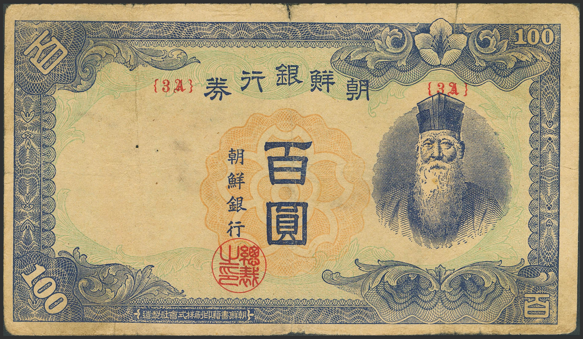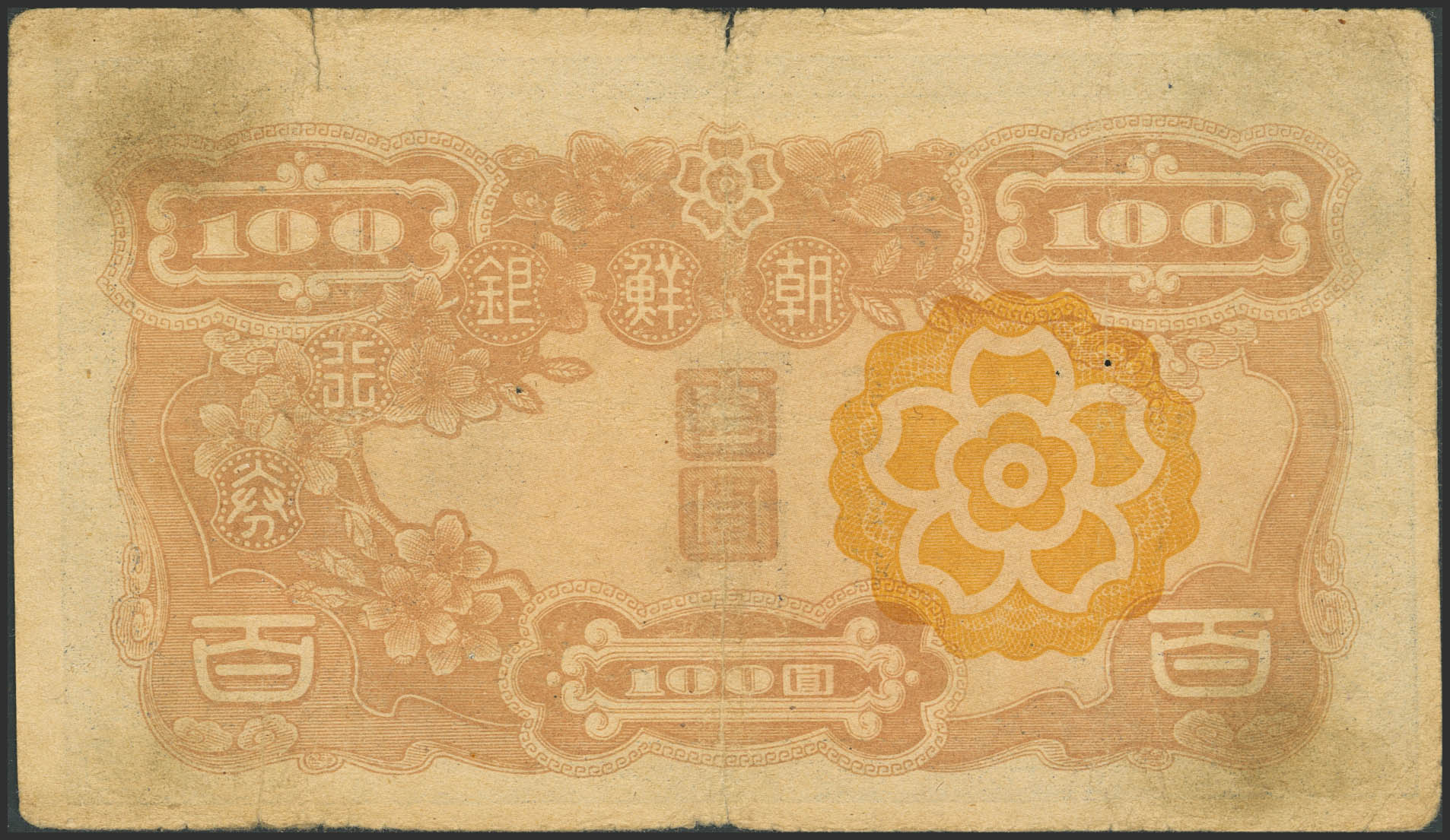 KOREA. 100 Yen. (1946ca). Bank of Chosen. US Army Administration. (Pick: 45). Tears and pinholes. More than Fine.