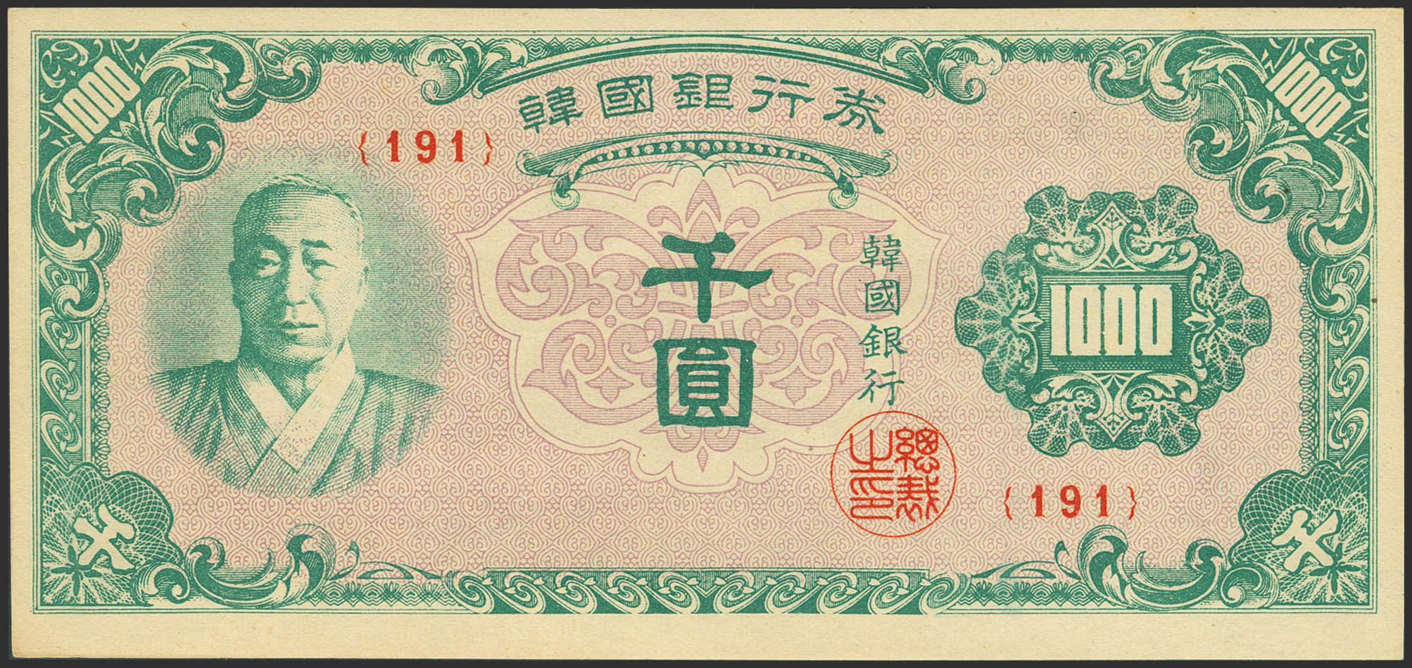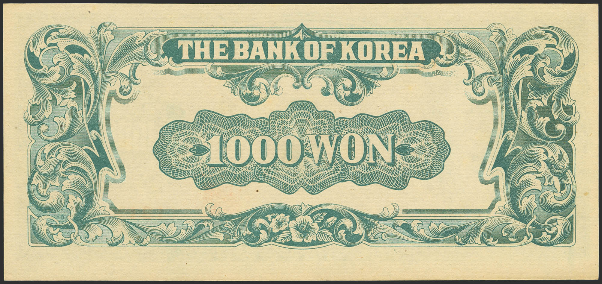 KOREA SOUTH. 1000 Won. (1950ca). Bank of Korea. (Pick: 8). Less than Uncirculated.