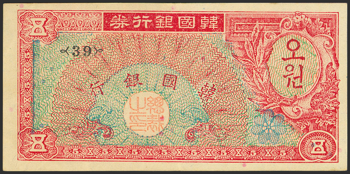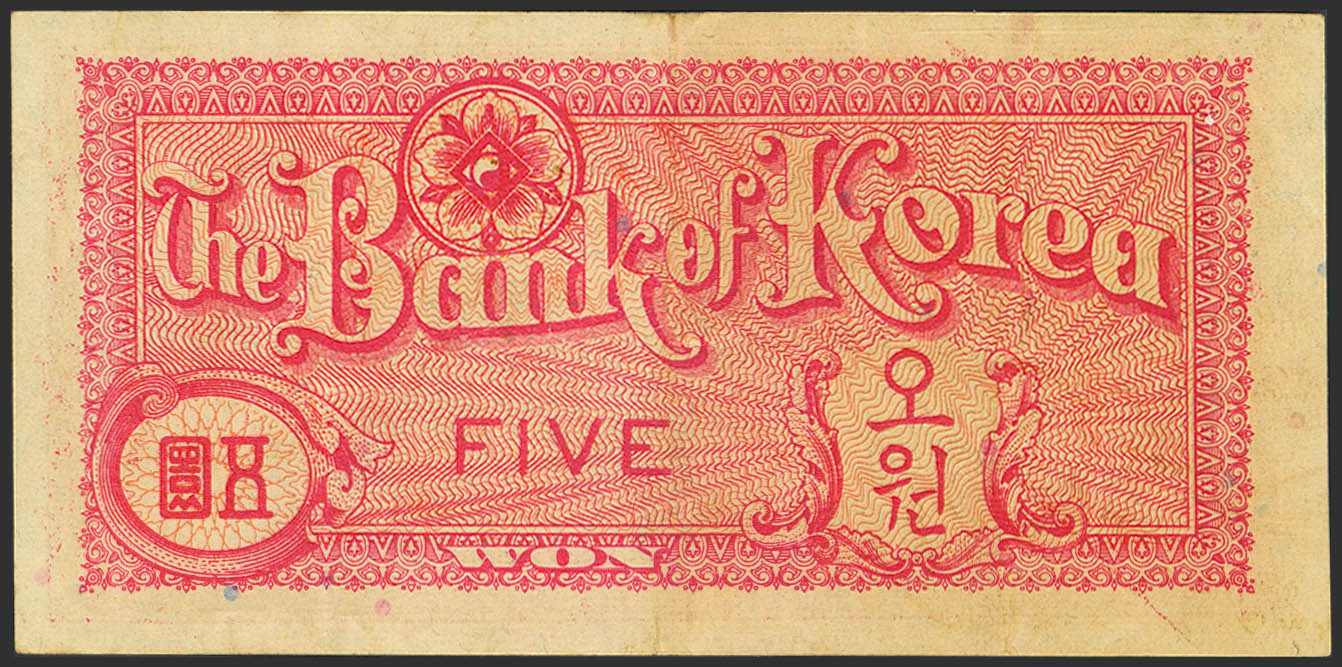 KOREA SOUTH. 5 Won. (1953ca). Bank of Korea. (Pick: 12). More than Very Fine.