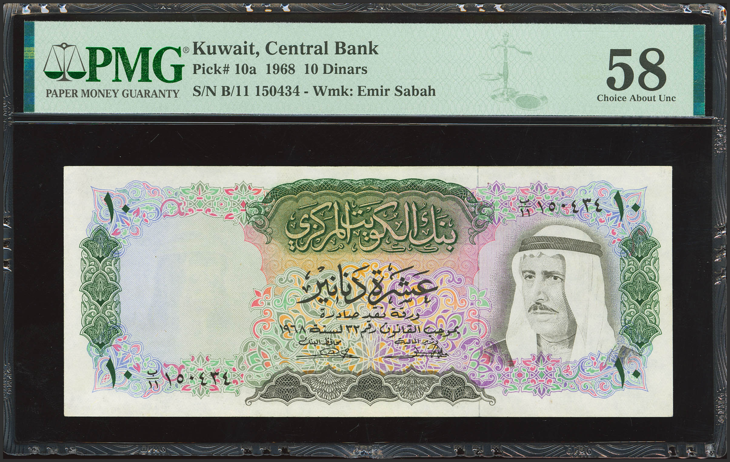 KUWAIT. 10 Dinars. 1968. Central Bank. (Pick: 10a). PMG58.