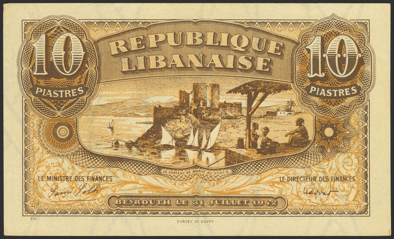 LEBANON. 10 Piastres. 31 July 1942. Republique Libanaise. (Pick: 35). Extremely Fine.