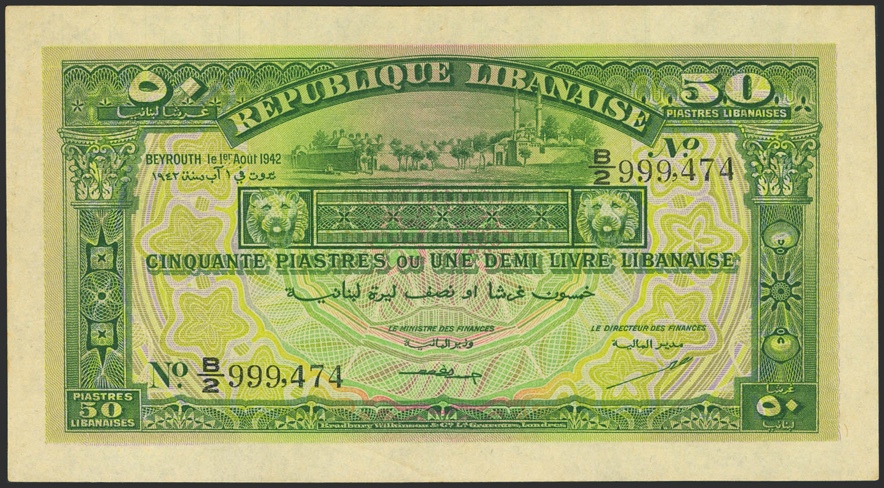 LEBANON. 50 Piastres. 1 August 1942. Republique Libanaise. (Pick: 37). Almost Uncirculated.