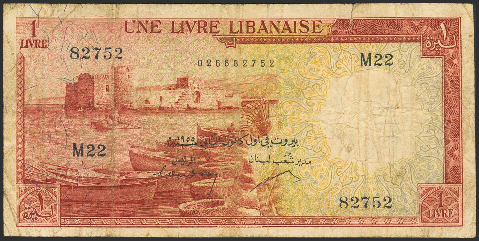 LEBANON. 1 Livre Libanaise. 1955. Banque de Syrie et du Liban. (Pick: 55a). Very Fine.
