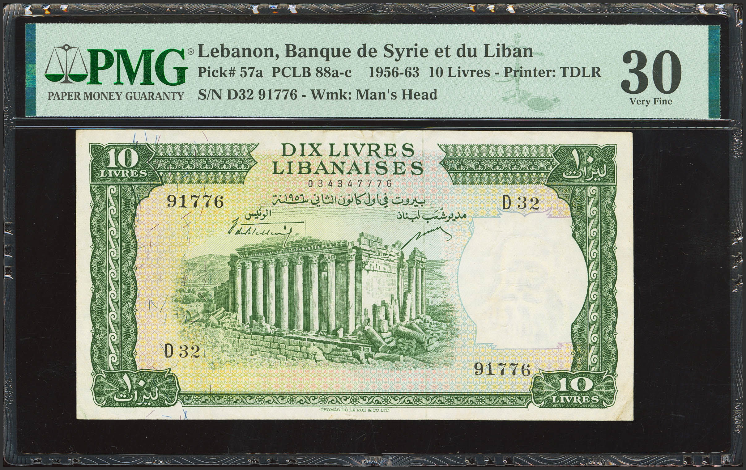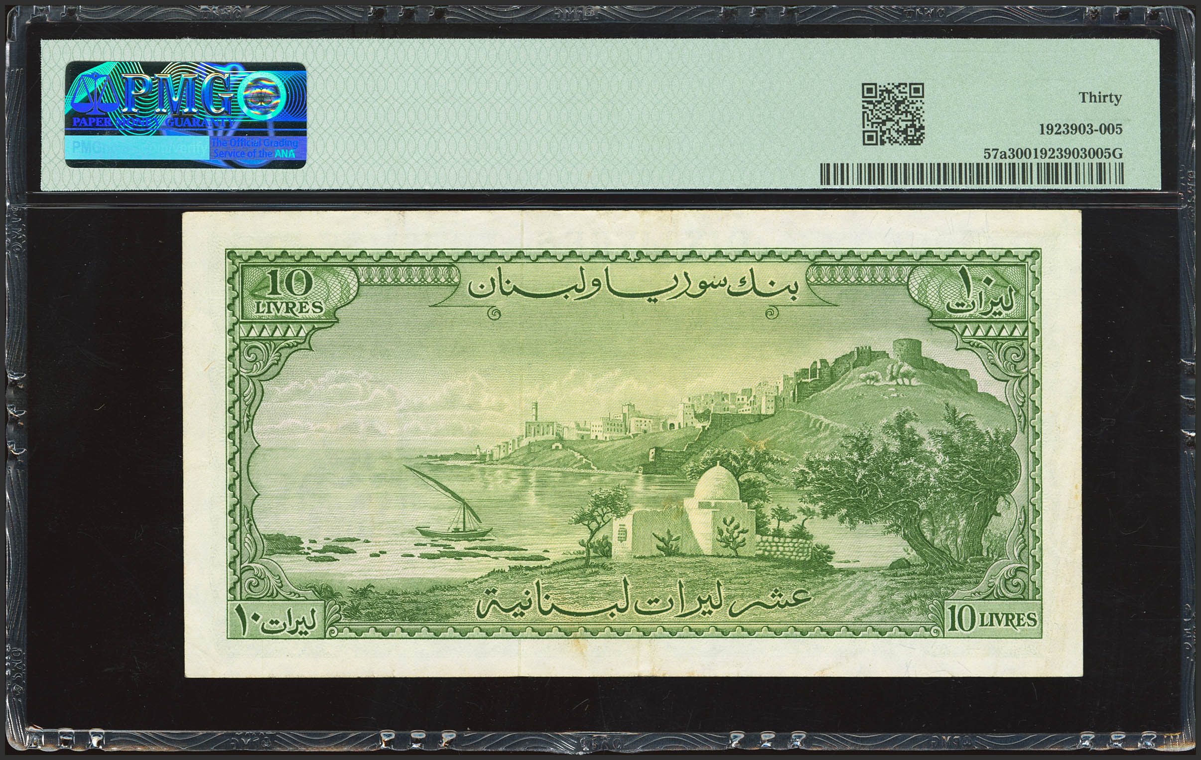 LEBANON. 10 Livres Libanaises. 1956. Banque de Syrie et du Liban. (Pick: 57a). PMG30.