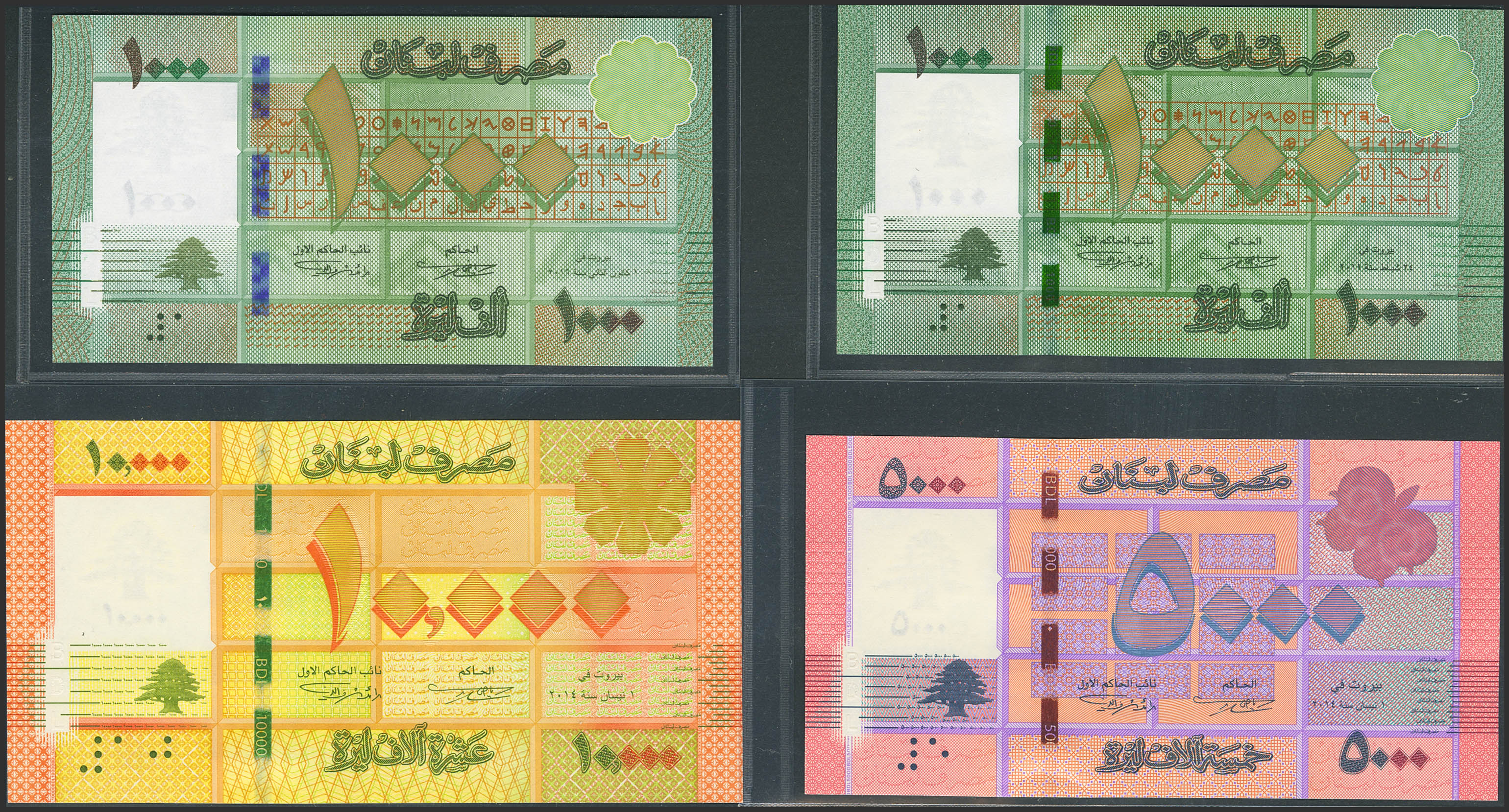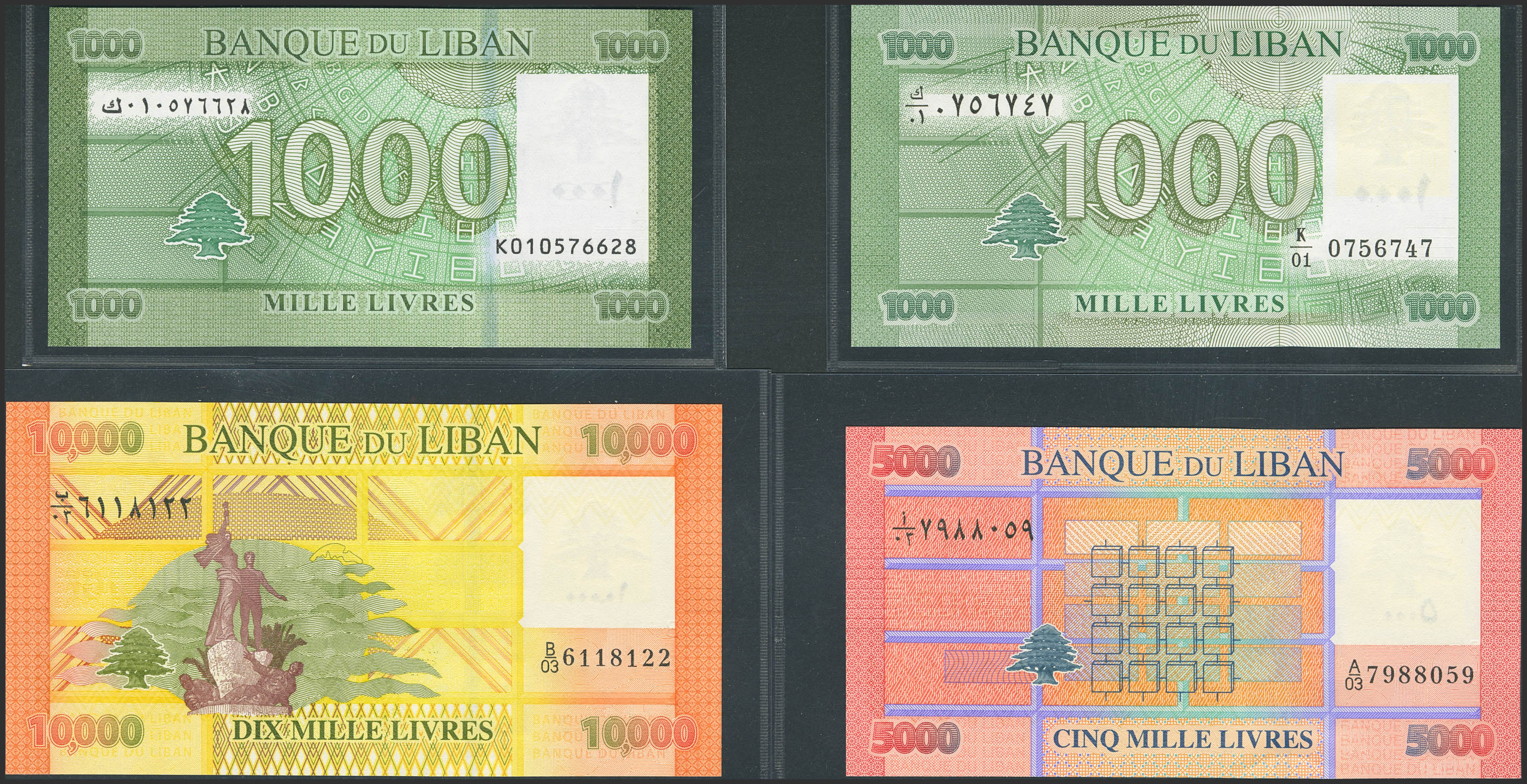 LEBANON. Lot of 4 notes from 1000 at 10000 Livres. (2011ca). Banque Du Liban. (Pick: 90a, 90b, 91b, 92b). Uncirculated.