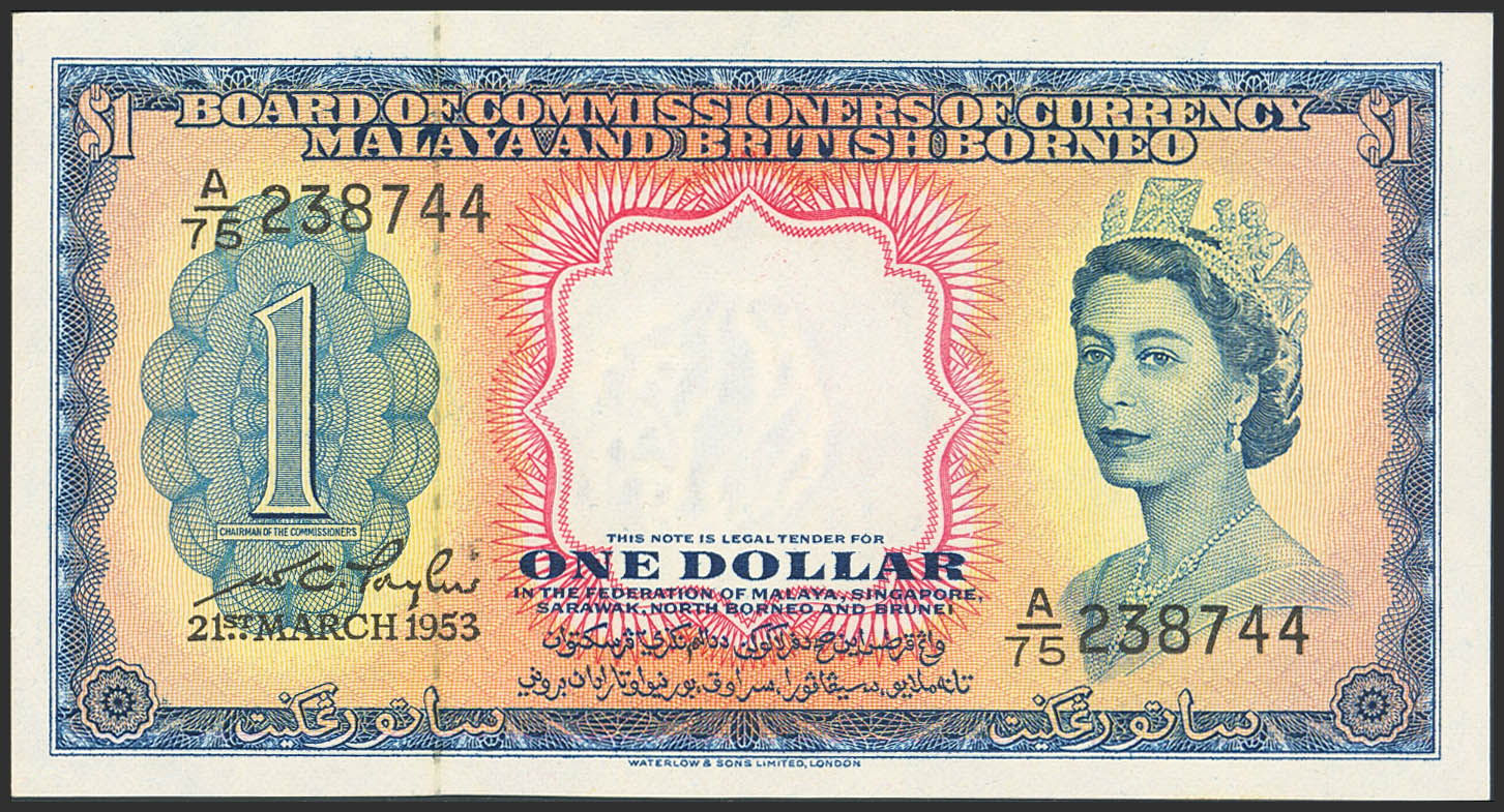 MALAYA AND BRITISH BORNEO. 1 Dollar. 21 March 1953. Board of Commissioners of Currency. (Pick: 1a). Less than Uncirculated.