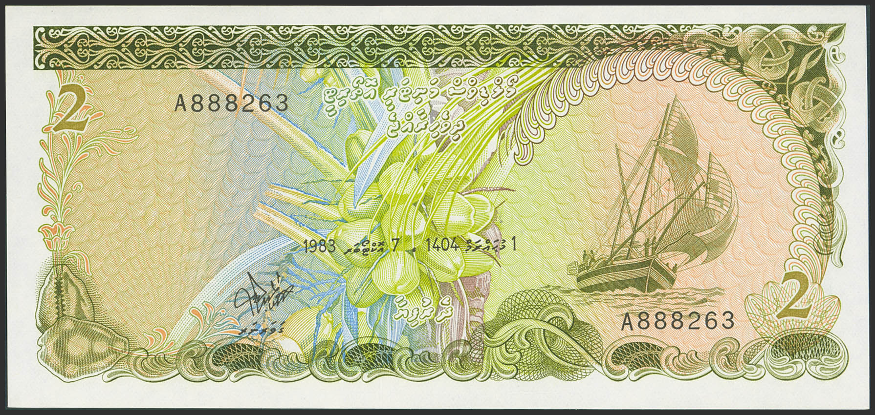 MALDIVES. 2 Rufiyaa. 1983. Maldives Monetary Authority. (Pick: 9a). Uncirculated.