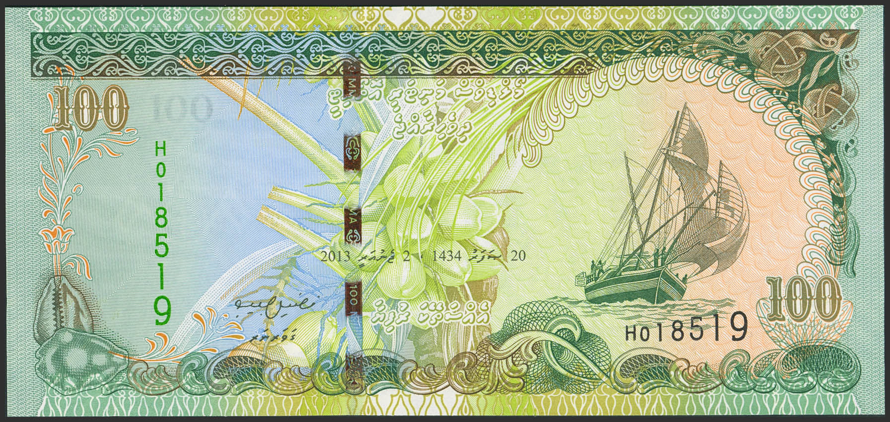 MALDIVES. 100 Rufiyaa. 2013. Maldives Monetary Authority. (Pick: 22c). Uncirculated.