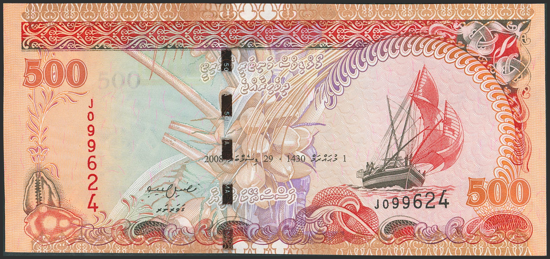 MALDIVES. 500 Rufiyaa. 2008. Maldives Monetary Authority. (Pick: 24b). Uncirculated.