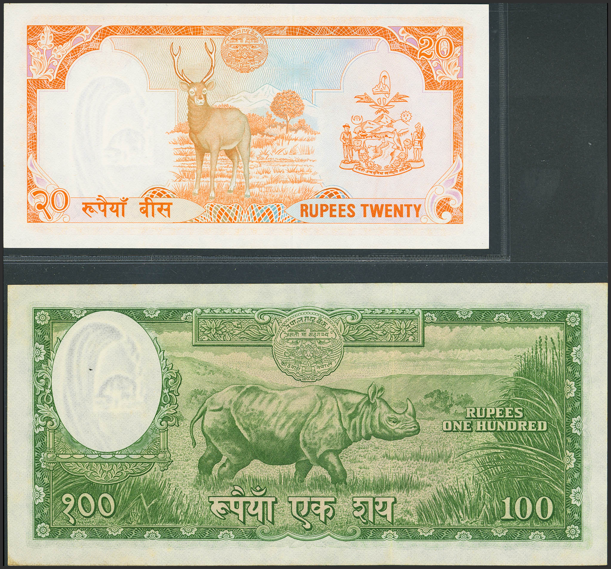 NEPAL. Lot of 2 notes of 20 and 100 Taka. (1968ca) to (1982ca). National Bank. (Pick: 15, 32a). Less than Uncirculated and Uncirculated.
