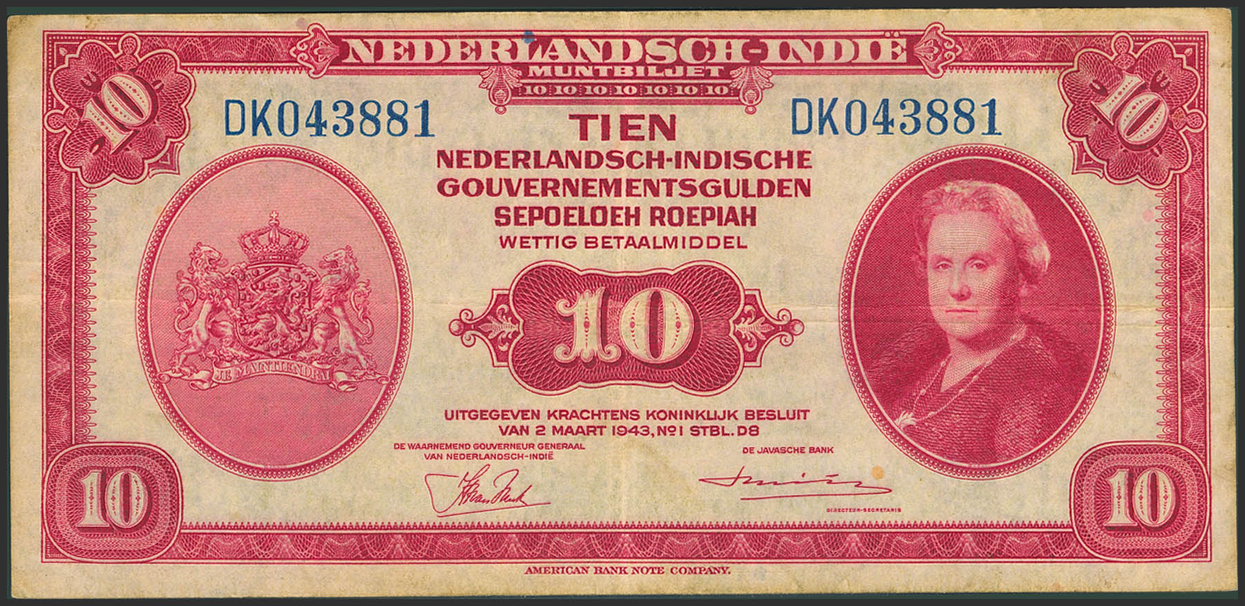 NETHERLANDS INDIES. 10 Gulden. 2 March 1943. Ministry of Finance. Javasche Bank. (Pick: 114a). More than Very Fine.