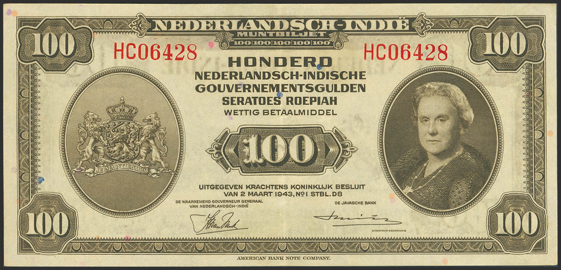 NETHERLANDS INDIES. 100 Gulden. 2 March 1943. Ministry of Finance. Javasche Bank. (Pick: 117a). More than Extremely Fine.