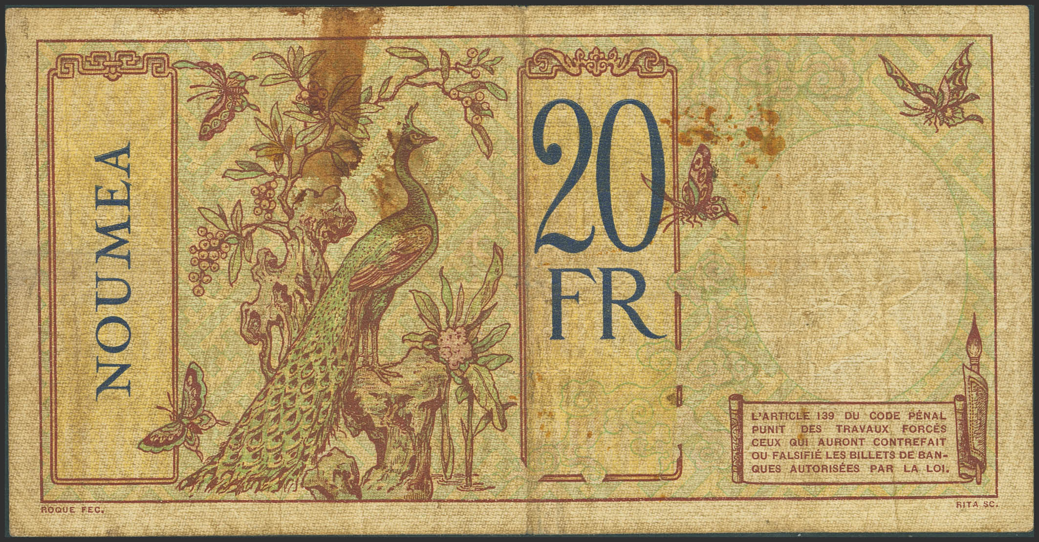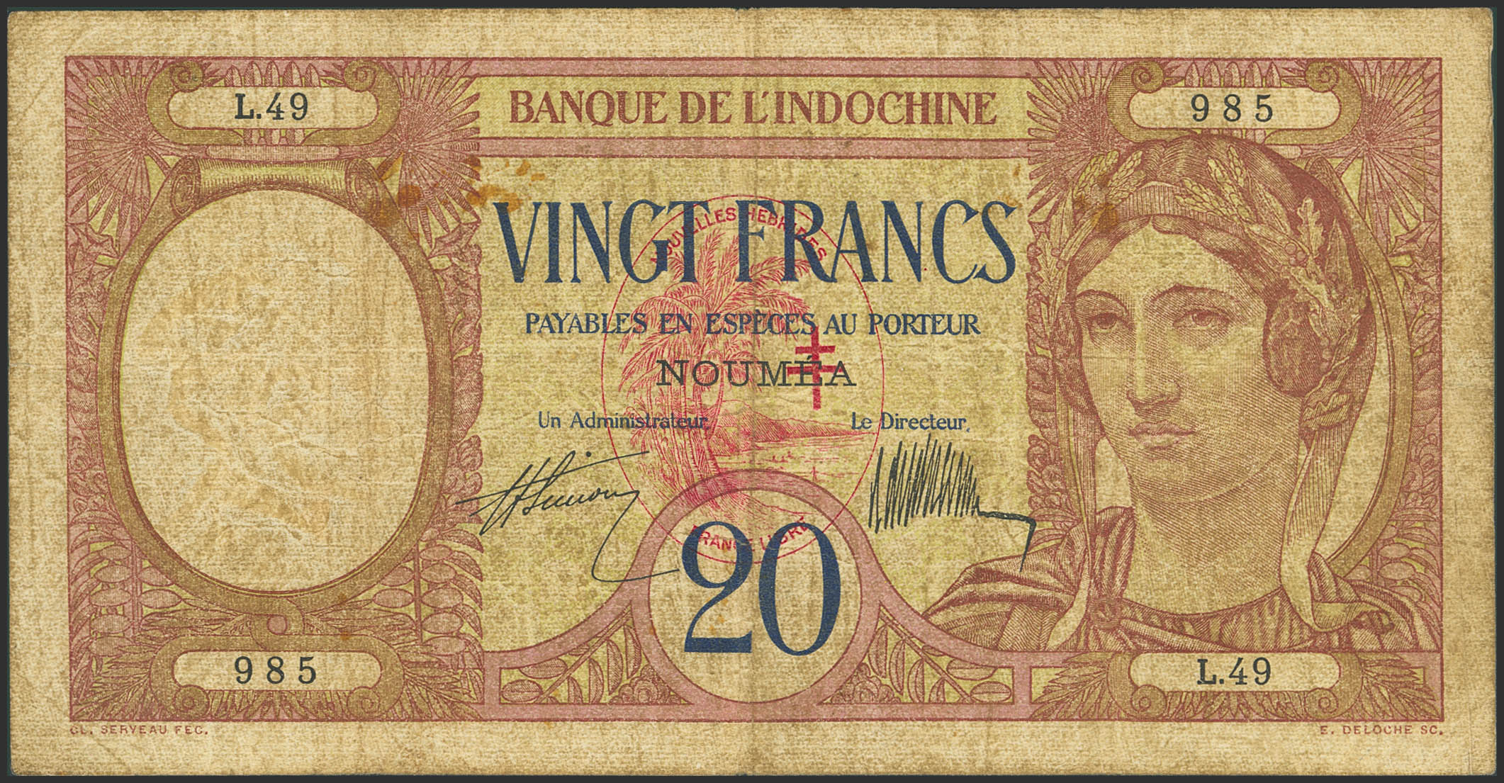 NEW HEBRIDES. 20 Francs. (1941ca). Banque de L´Indochine. (Pick: 6). Fine, pressed.