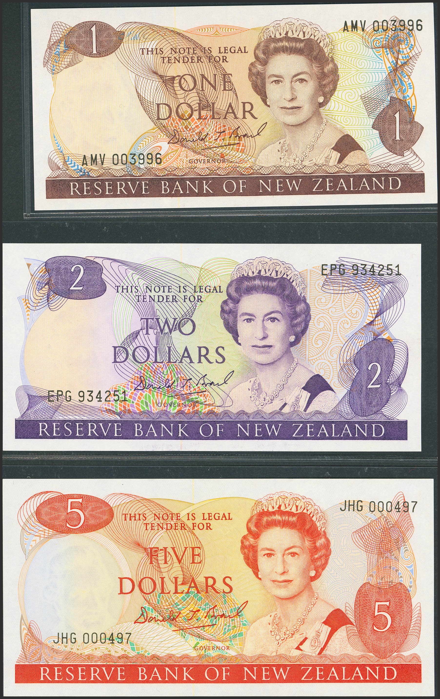 NEW ZEALAND. Lot of 3 notes of 1, 2 and 5 Dollars. (1992ca). Reserve Bank. (Pick: 169c, 170c, 171c). Almost Uncirculated (1) and Uncirculated (2).