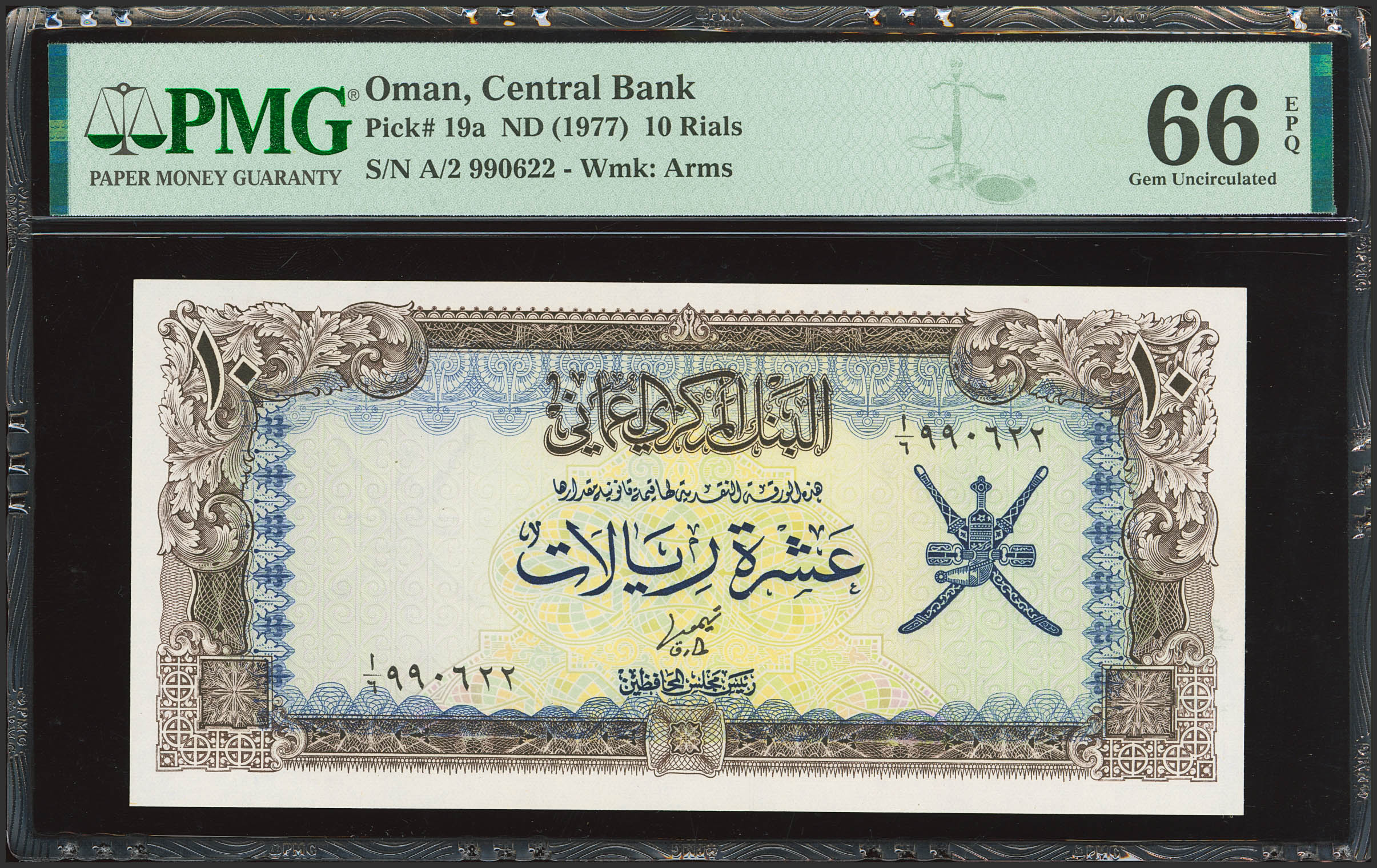 OMAN. 10 Rials. (1977ca). Central Bank. (Pick: 19a). PMG66EPQ.