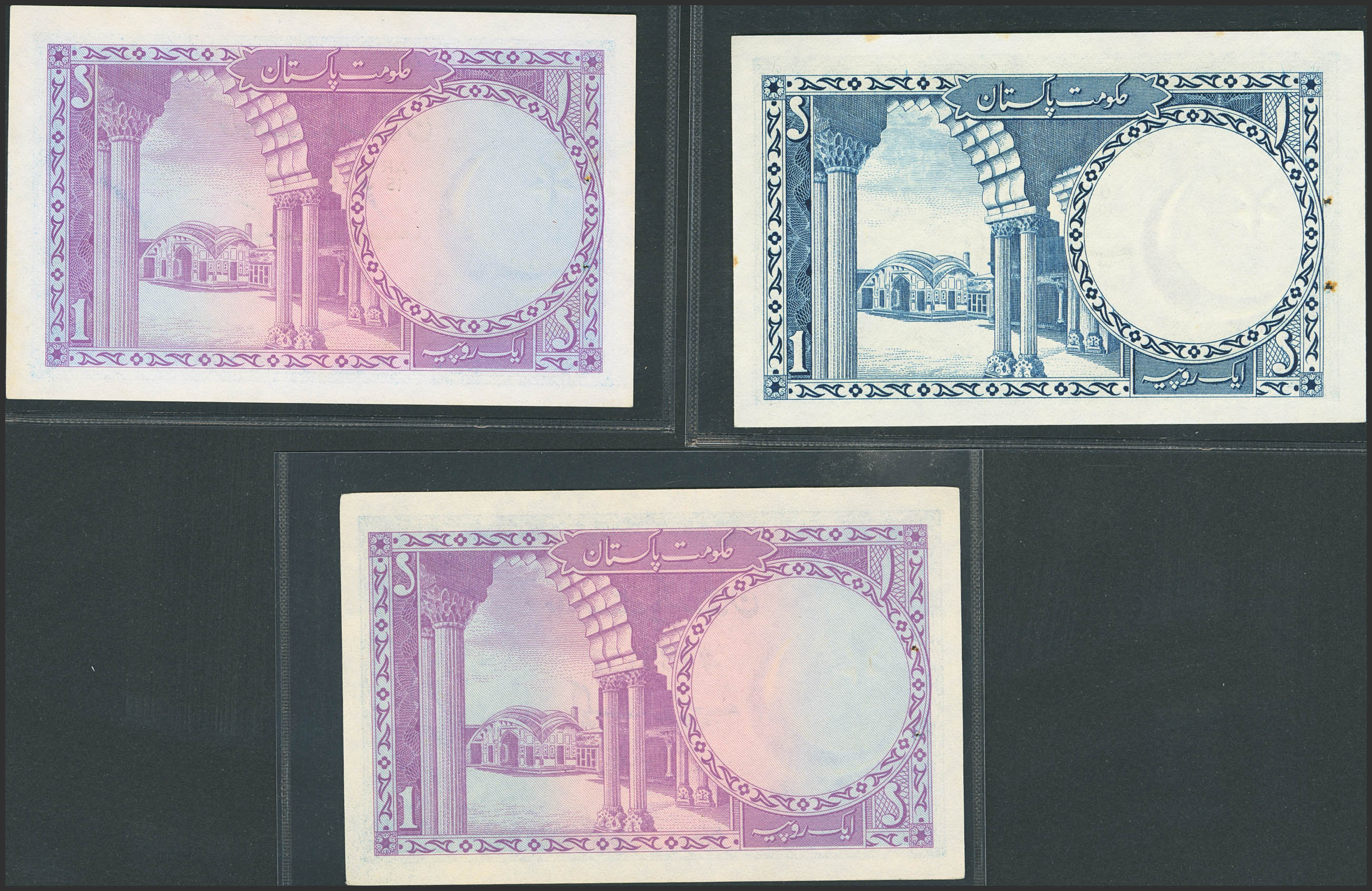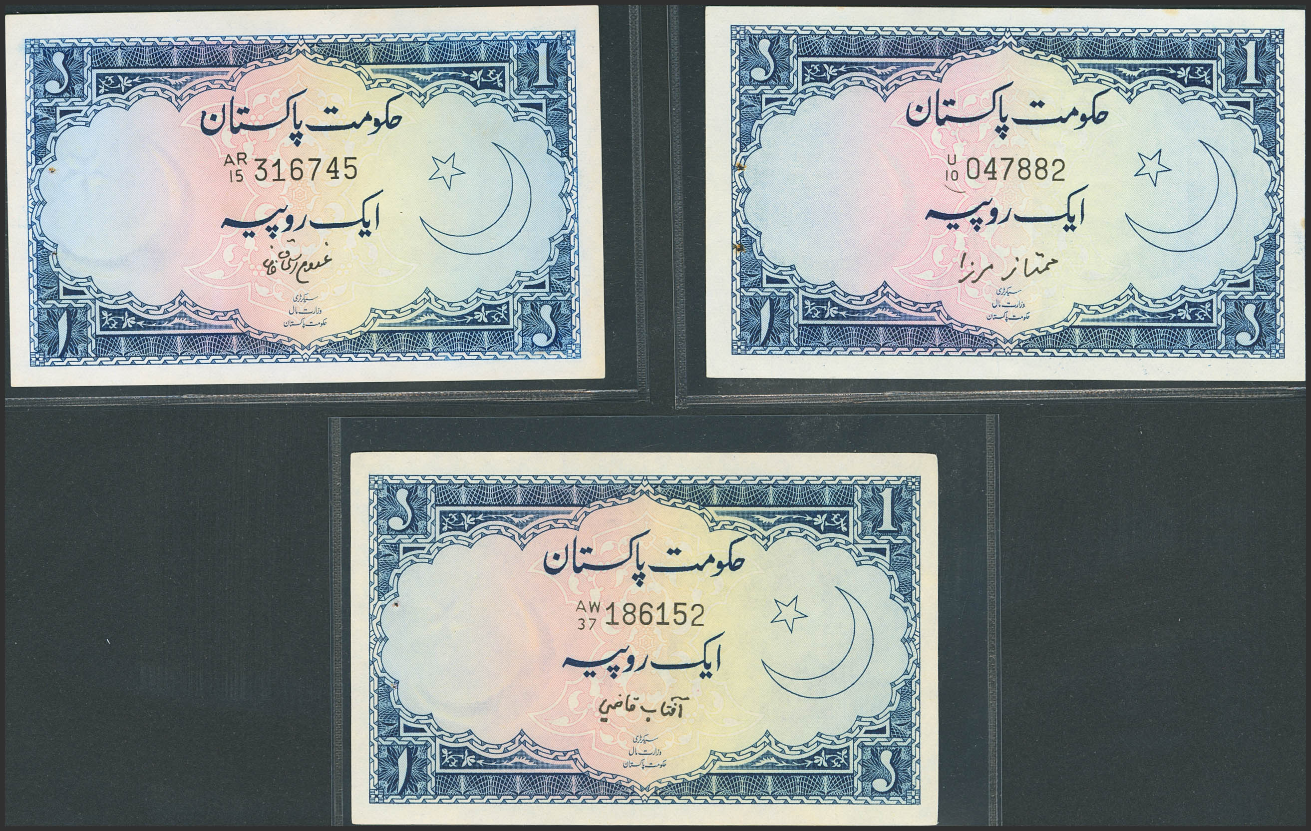 PAKISTAN. Lot of 3 notes of 1 Rupee. (1951ca). Government. (Pick: 9, 9A(2)). Uncirculated, staple holes at issue.