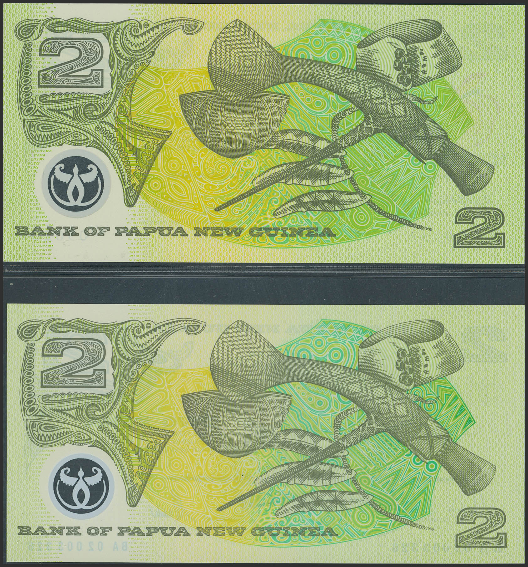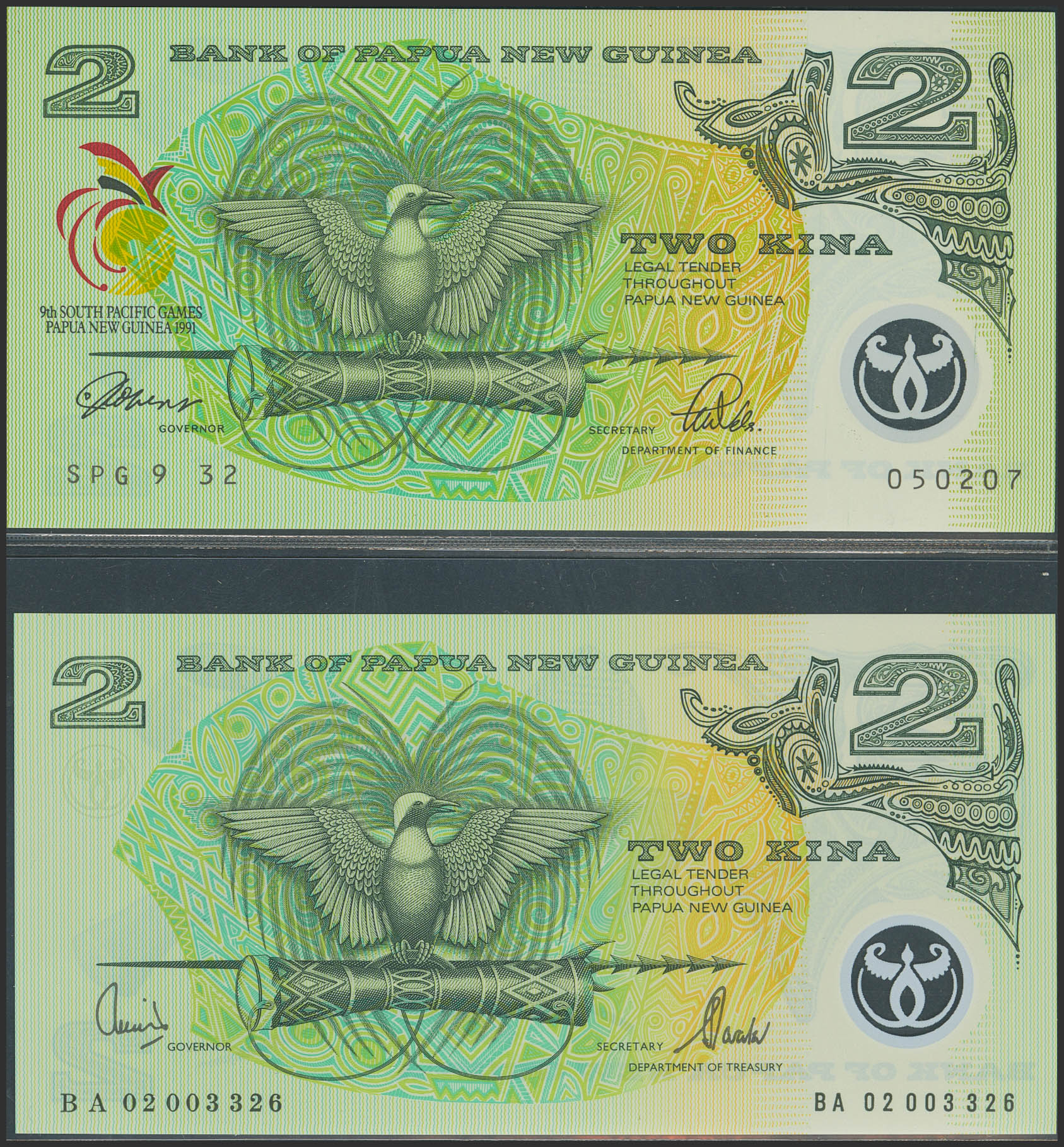 PAPUA NEW GUINEA. Lot of 2 notes of 2 Kina. 1991, 2002. Bank of Papua New Guinea. (Pick: 12a, 16d). Uncirculated.