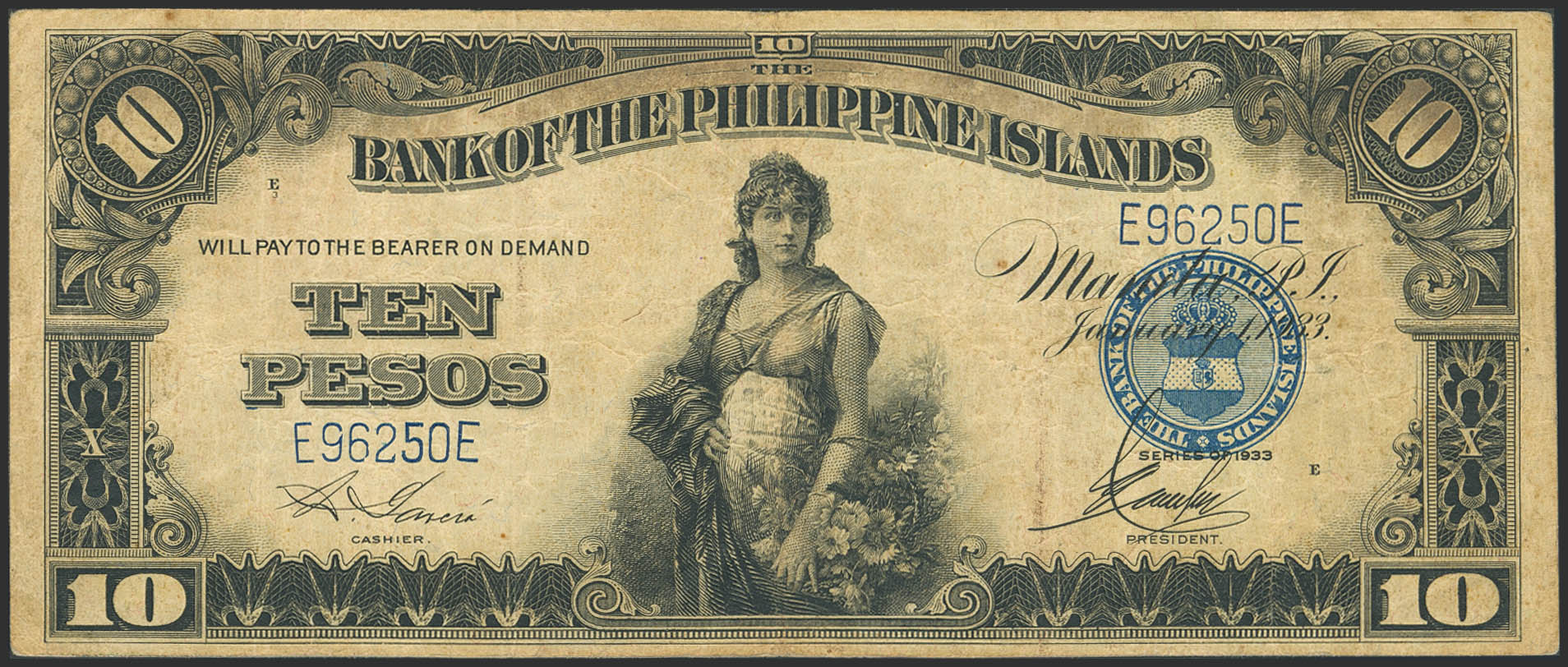 PHILIPPINES. 10 Pesos. 1 January 1933. Bank of the Philippine Islands. (Pick: 23). Fine.