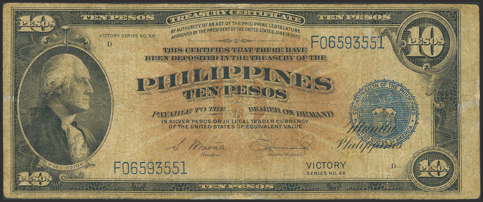 PHILIPPINES. 10 Pesos. (1944ca). Treasury of the Philippines. (Pick: 97). Restored. Fine.