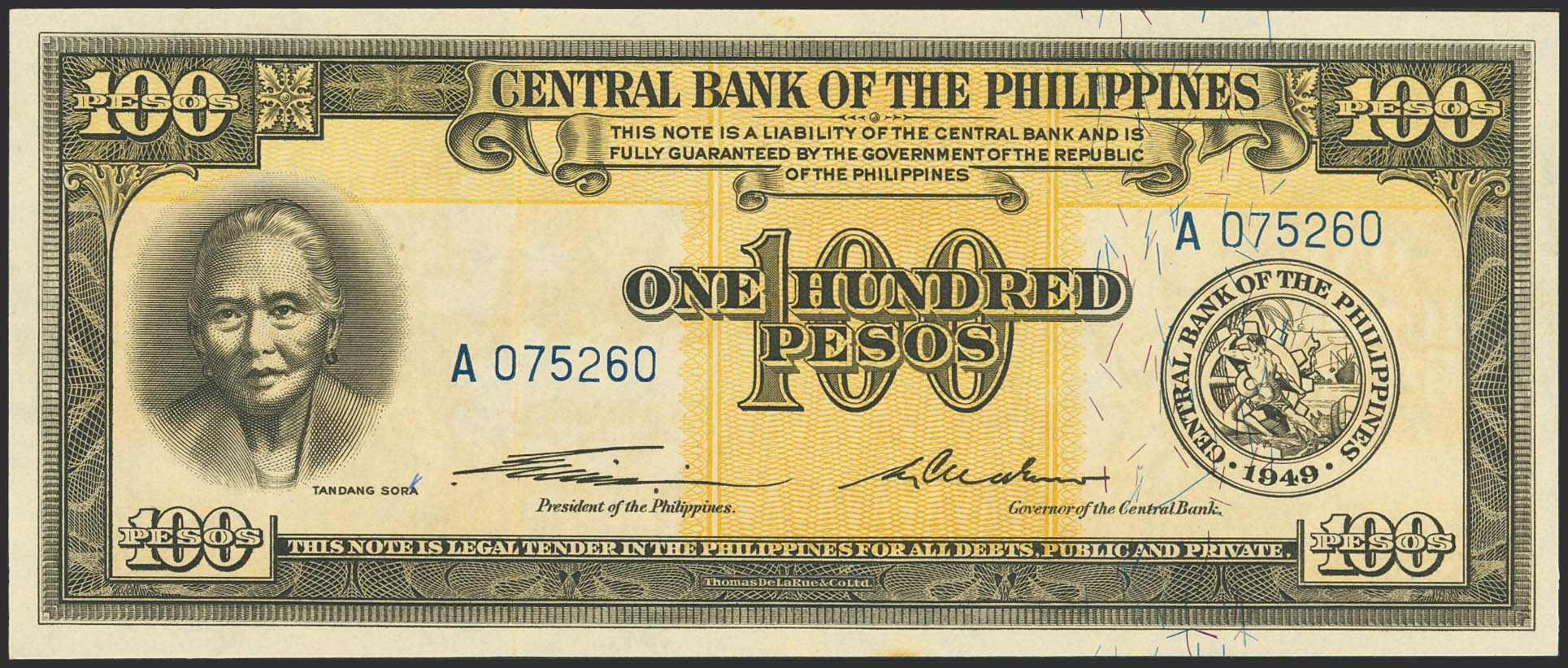 PHILIPPINES. 100 Pesos. (1949ca). Central Bank. (Pick: 139a). Uncirculated.