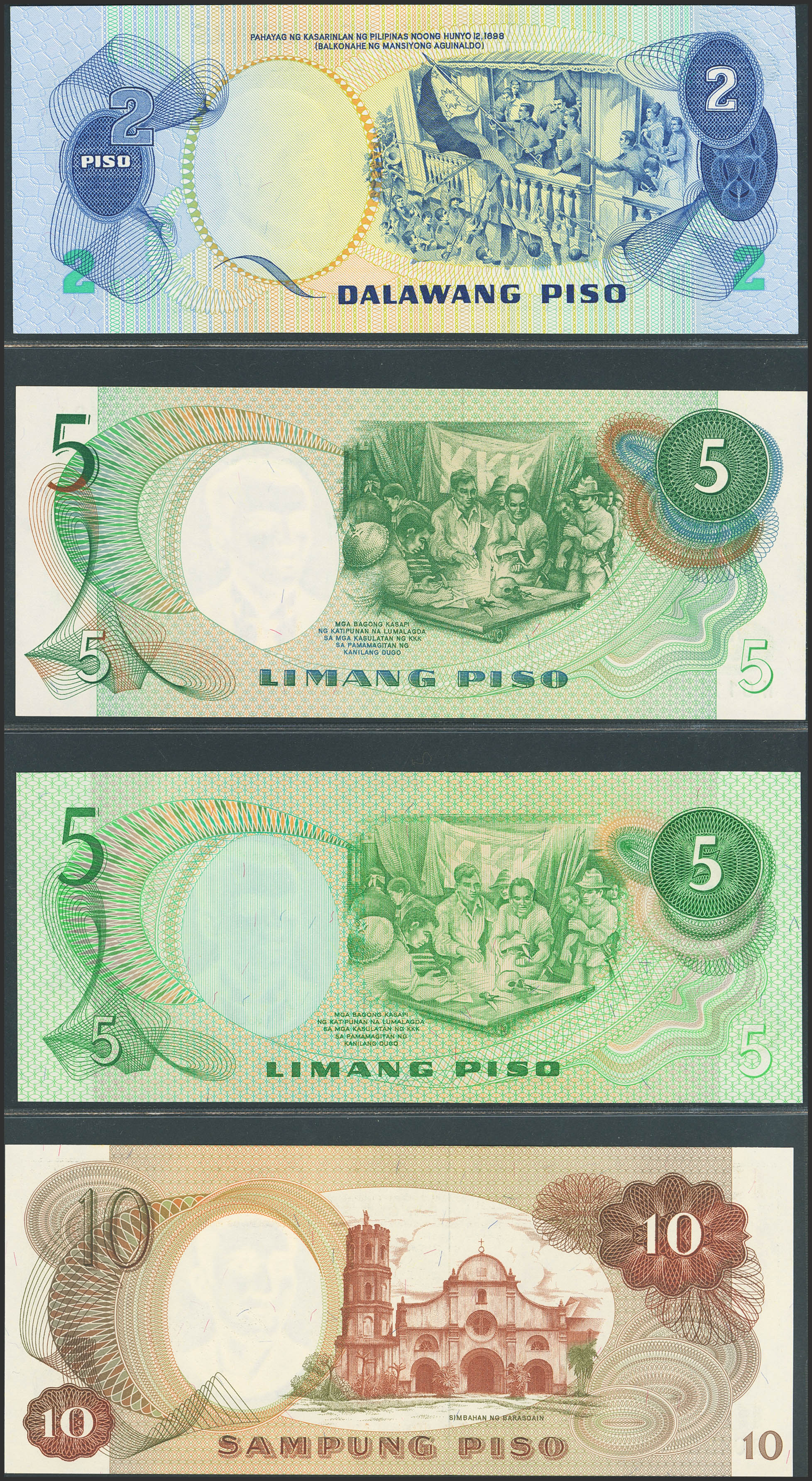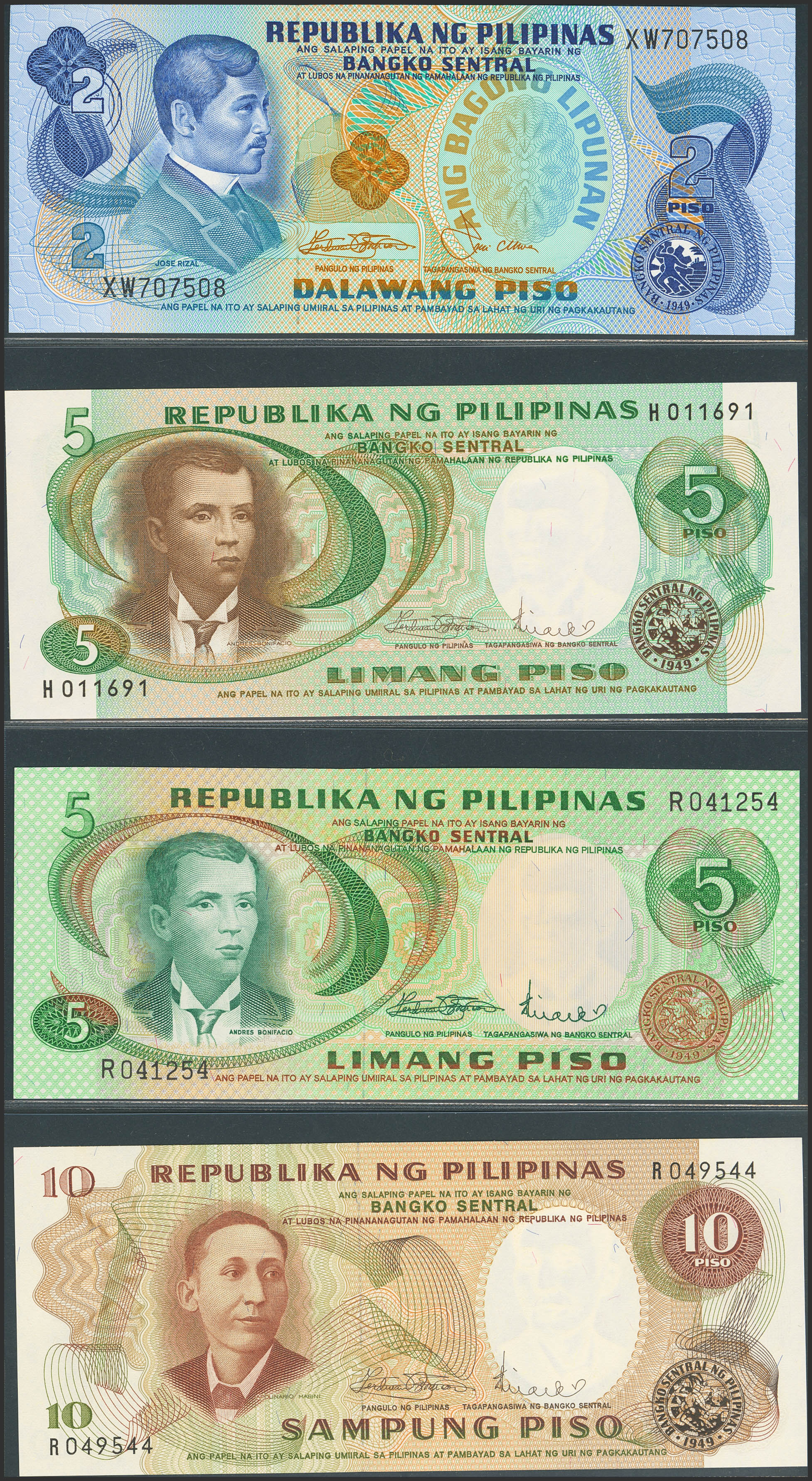 PHILIPPINES. Lot of 4 notes of 2, 5 and 10 Piso. 1969 to 1978. Central Bank. (Pick: 143b, 144b, 148a, 159b). Uncirculated.
