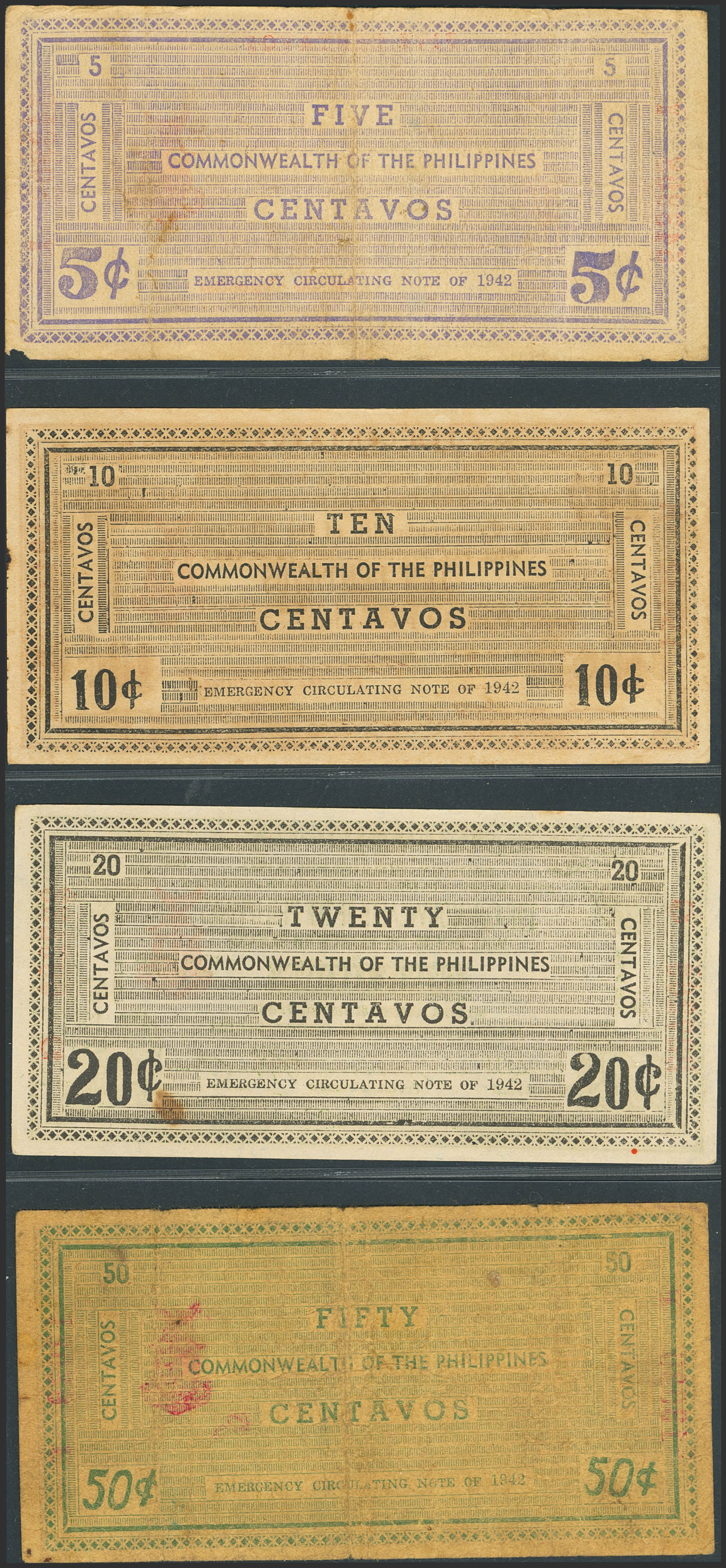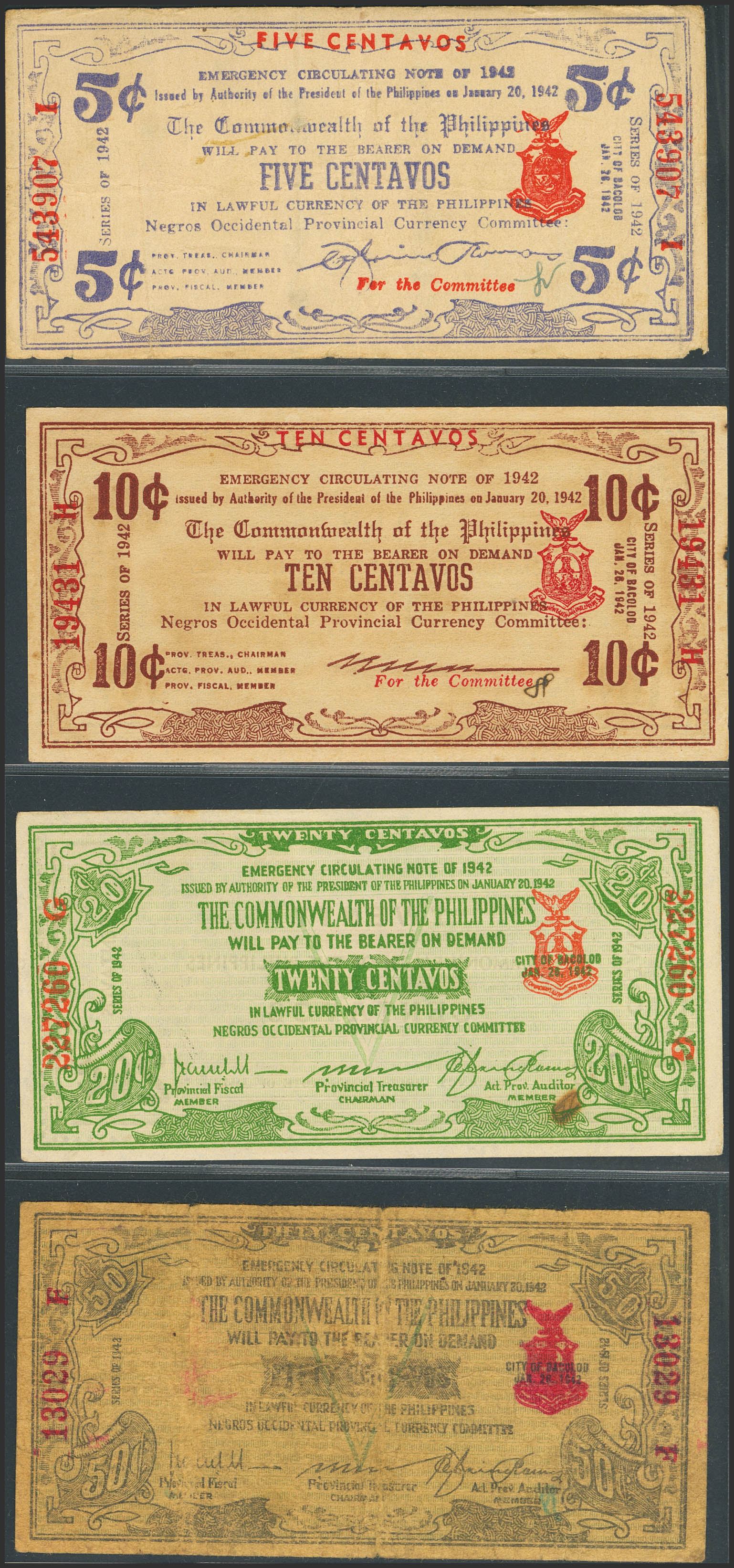 PHILIPPINES. Lot of 4 notes of Centavos. 20 January 1942. Negros Occidental Provincial Currency Committee. (Pick: S641, S642, S644, S645). Almost Uncirculated (2), Very Fine (1), Very Good (1).