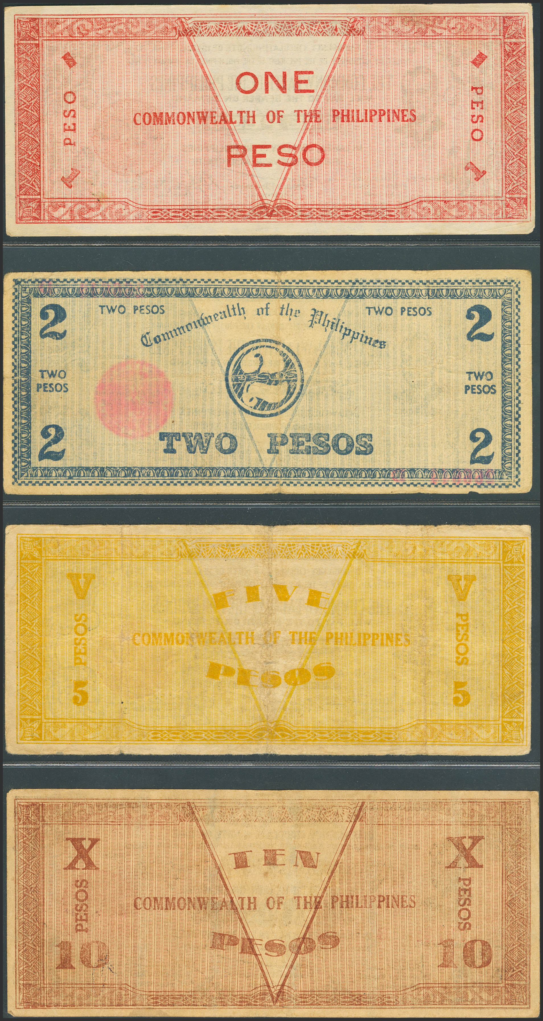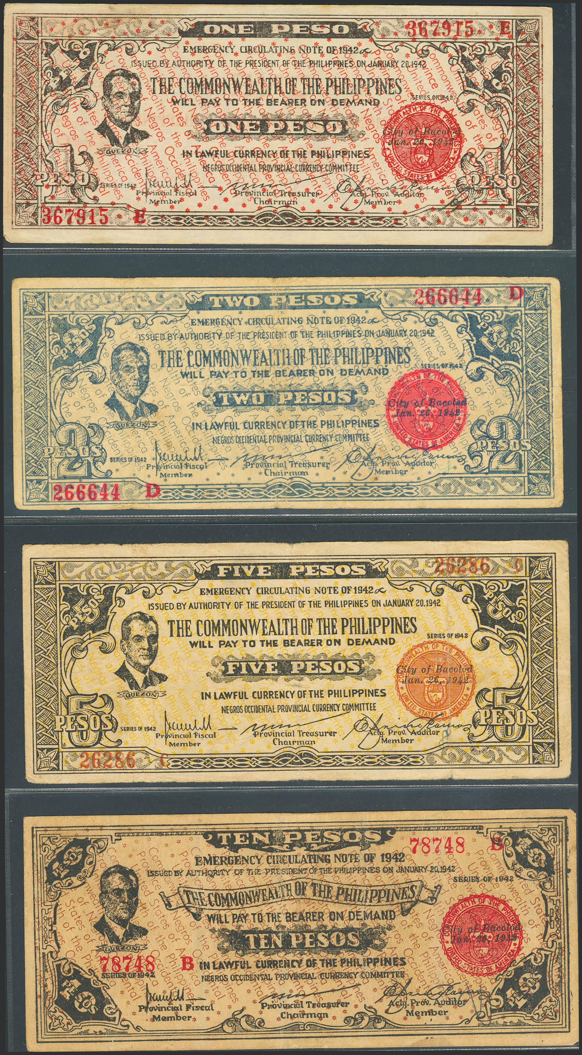 PHILIPPINES. Lot of 4 notes of 1, 1, 5 and 10 Pesos. 1942. Negros Occidental Provincial Currency Committee. (Pick: S646a, S647B, S648a, S649d). Extra Fine to Very Fine.